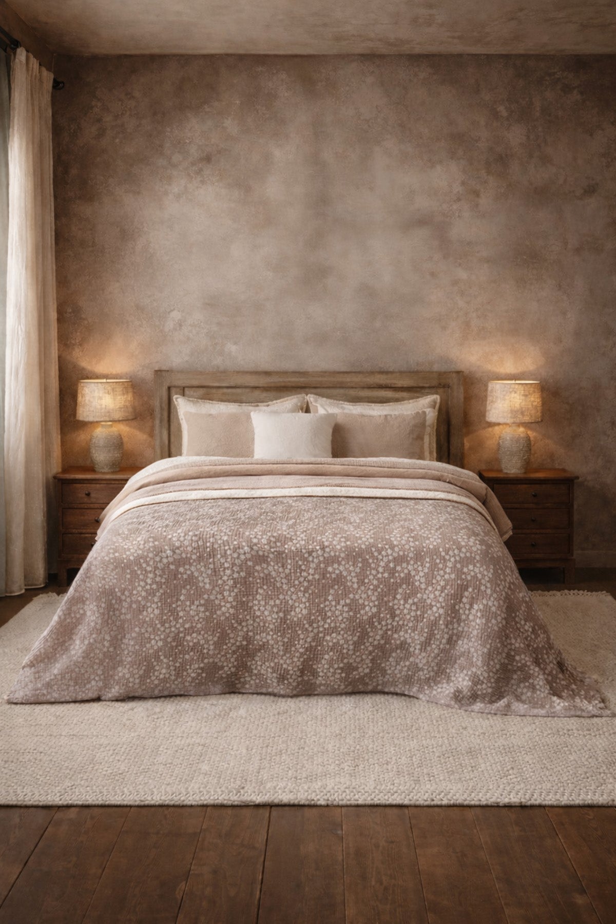 Serenity Keten Kapitoneli Yatak Örtüsü ve Yastık Kılıfı Seti Kum Rengi
