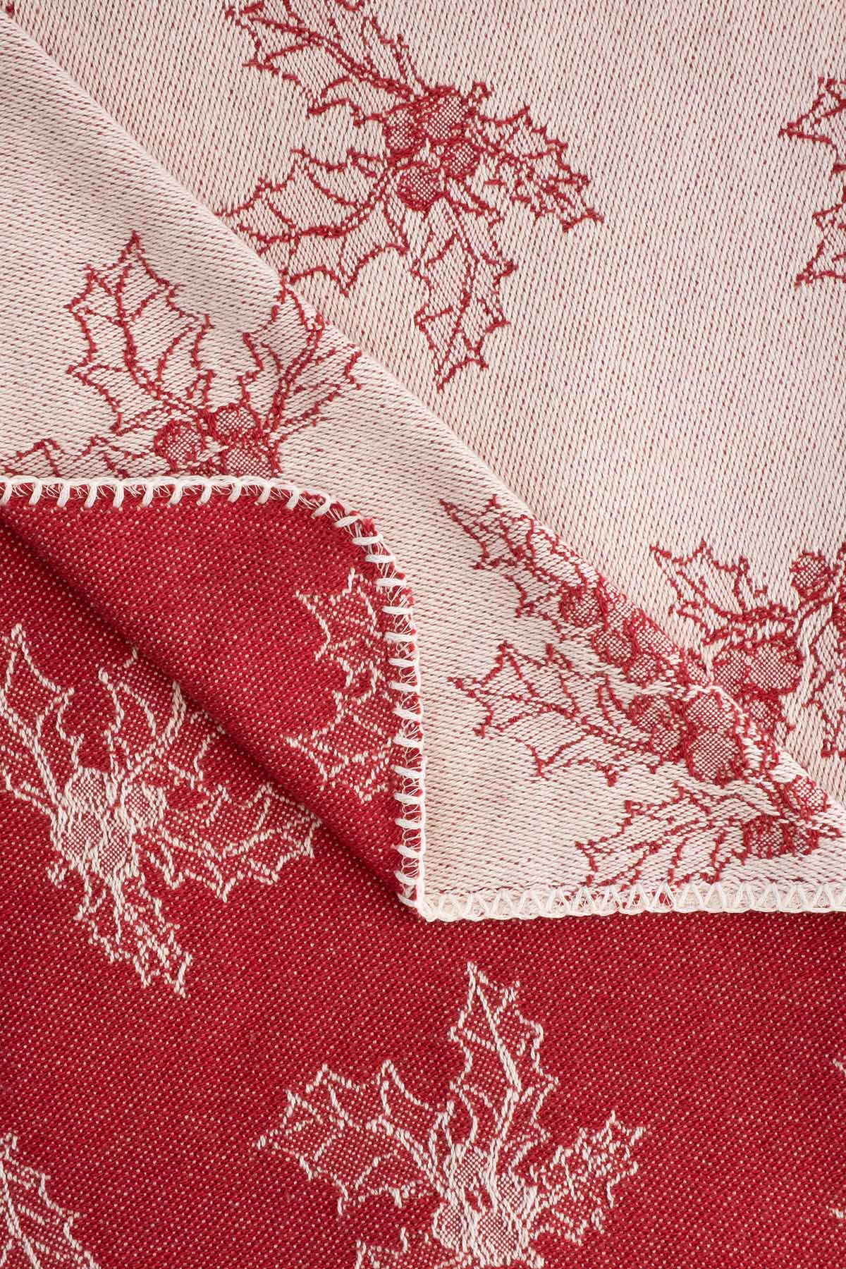 Yılbaşı ruhunu yansıtan çobanpüskülü desenli %100 pamuk throw, doğal dokusu ve süs dikişi detaylarıyla yaşam alanlarına sıcak bir dokunuş katar. 130x170 cm. Çift Taraflı kullanılabilir.