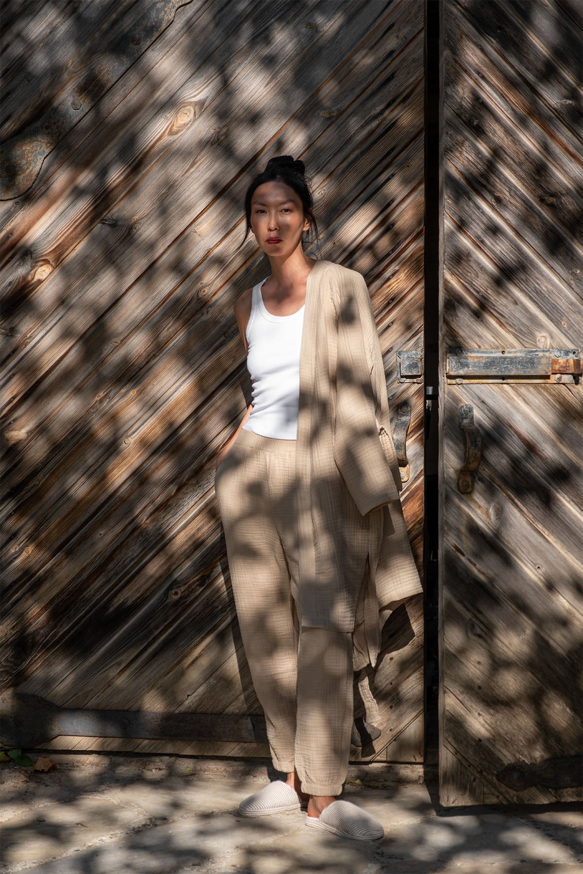 Our Cocoon fabric is expertly crafted to give you comfort and a good fit. Cocoon bathrobe is made of soft 4-layer fabric to keep you comfortable at every moment at home and has two secret pockets.