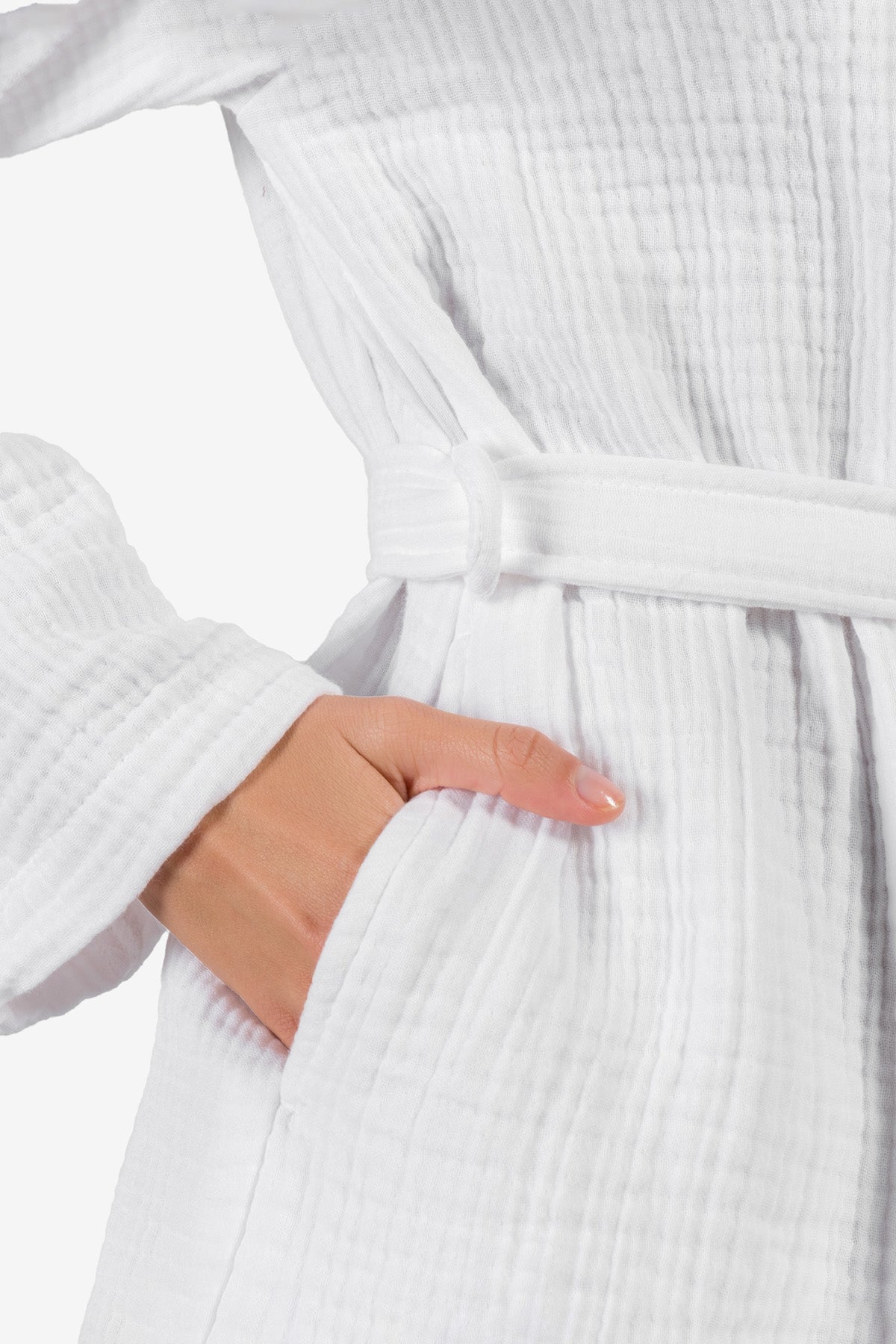 Our Cocoon fabric is expertly crafted to give you comfort and a good fit. Cocoon bathrobe is made of soft 4-layer fabric to keep you comfortable at every moment at home and has two secret pockets.