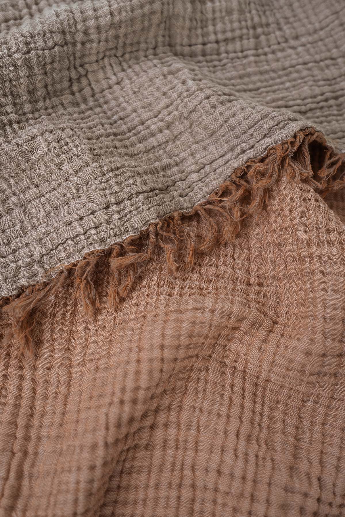 Cocoon Sofa Throw Apricot/Ginger Snap was designed with the harmony of timeless colors. This feast of colors is crowned with a soft weave and made of 100% cotton. The product is designed to be used bidirectionally. The front side is Apricot color and the back side is Ginger Snap color and it is 130x170cm in size.