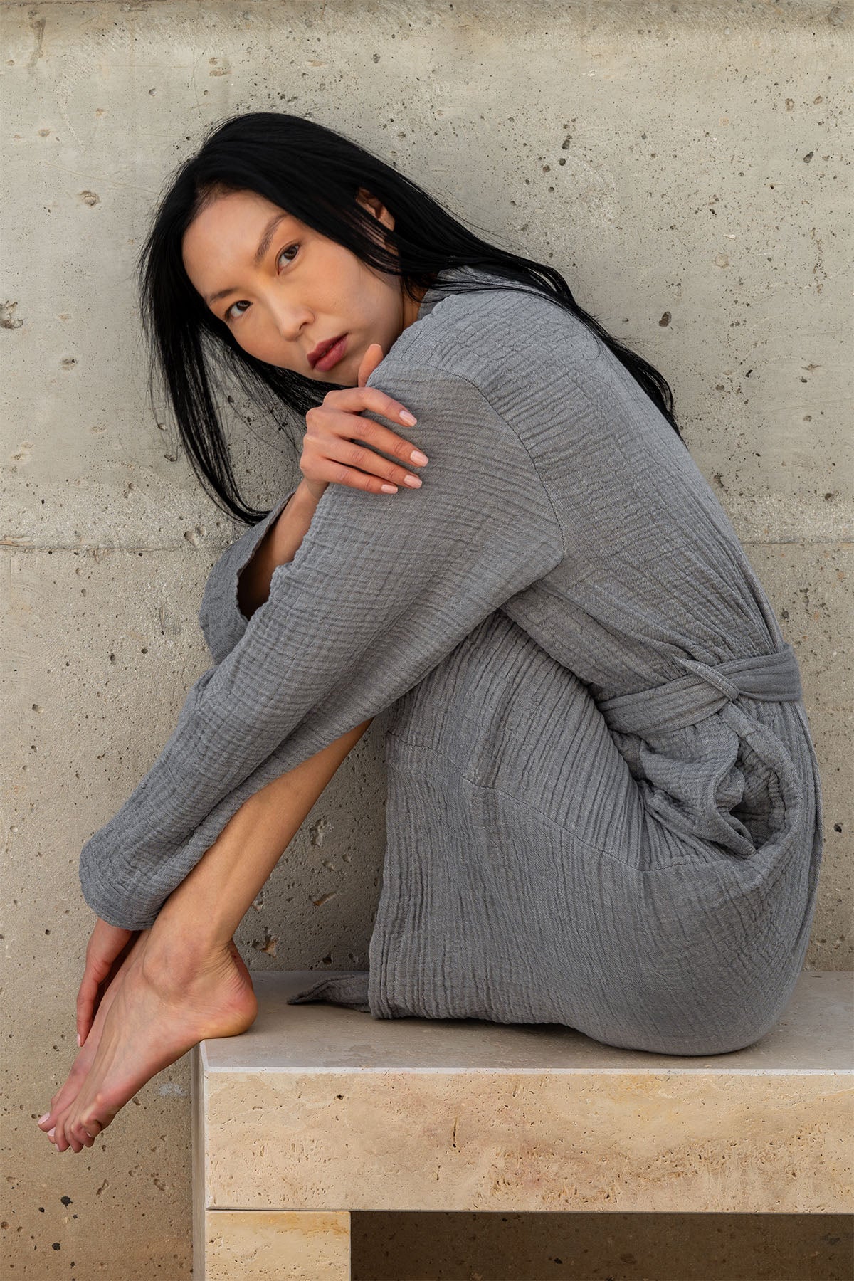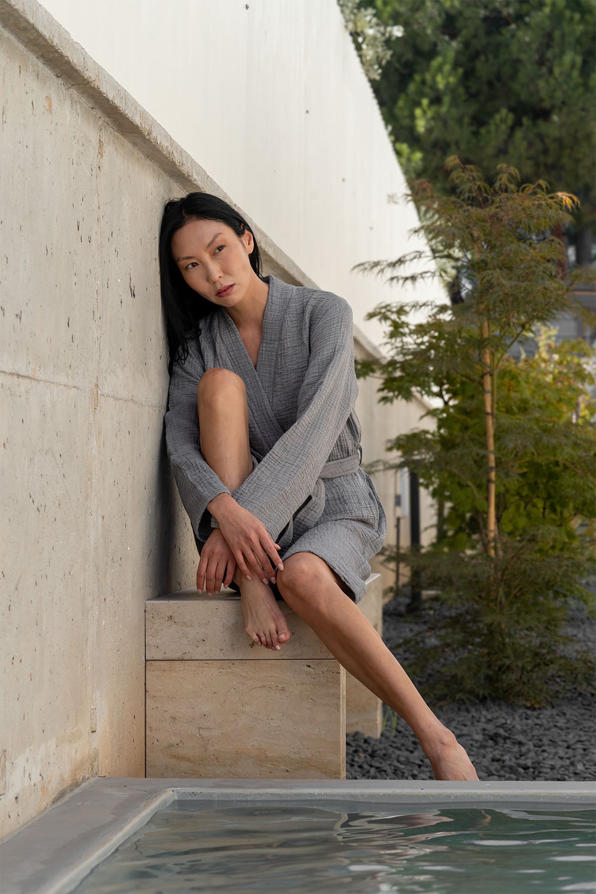 Our Cocoon fabric is expertly crafted to give you comfort and a good fit. Cocoon bathrobe is made of soft 4-layer fabric to keep you comfortable at every moment at home and has two secret pockets.