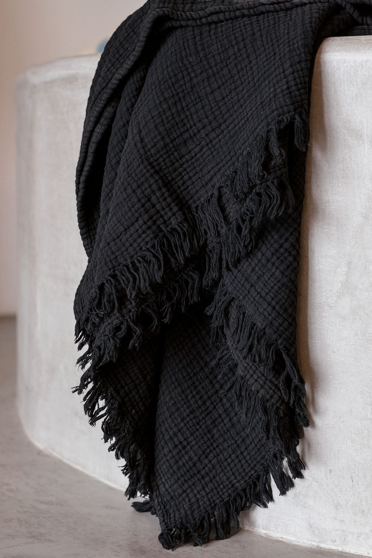 Cocoon Sofa Throw Black is a product frequently preferred by black lovers. This product, which you can use with pleasure by combining it with other components of the Carbon & Ecru theme, is one of the Best Sellers with its 100% cotton structure with a wisp effect. Product size is 130x170cm. The texture of this product, which you can use in both general home decoration and bed decoration, was completely developed by Barine.