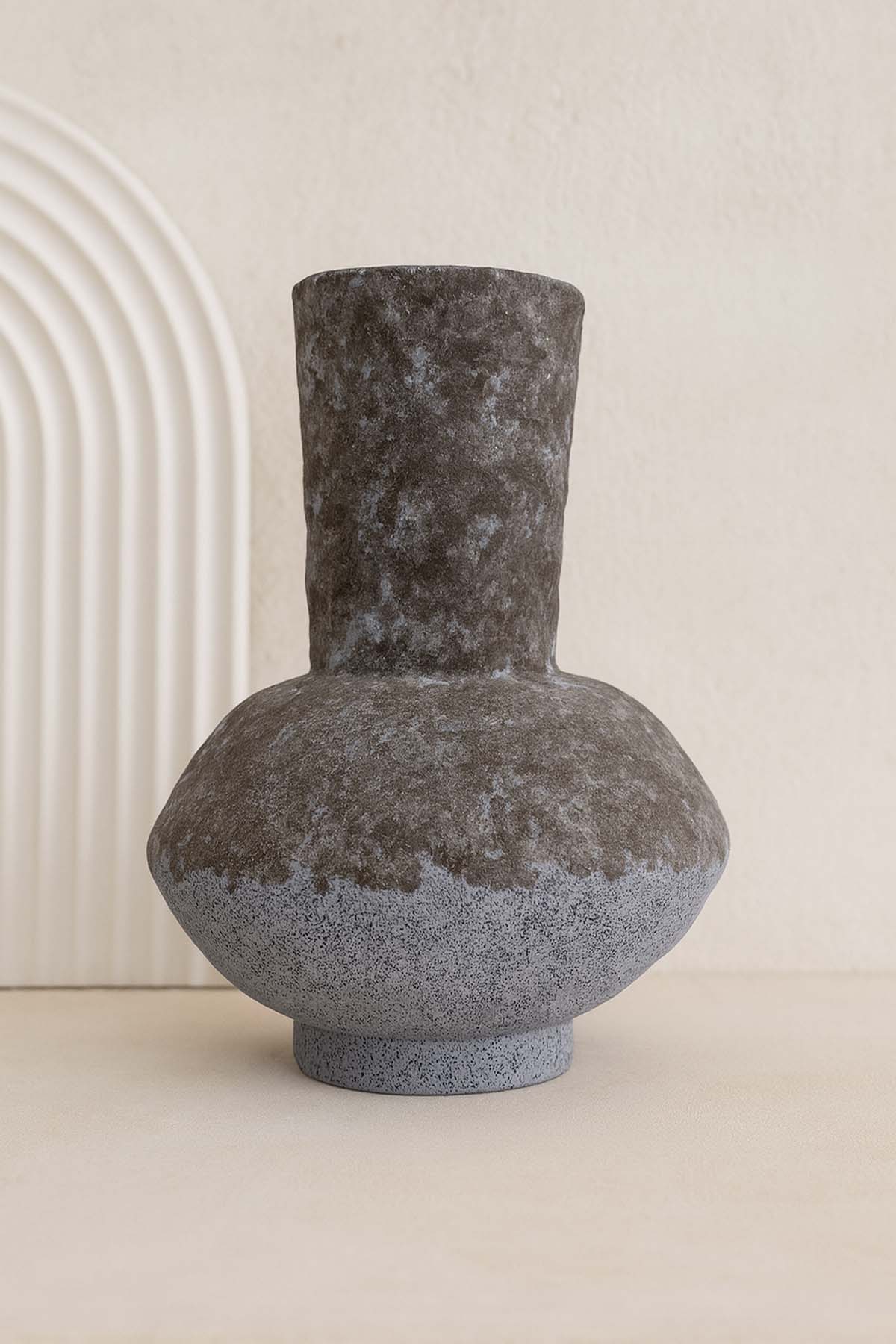 Garden Seramik Vazo, 28x28x36 cm ölçüsüyle yüksek ağızlı ve güçlü duruşuyla dikkat çeker. Toprak tonlarındaki yüzeyi ve modern formuyla iç mekanlarda doğal bir odak noktası oluşturur.