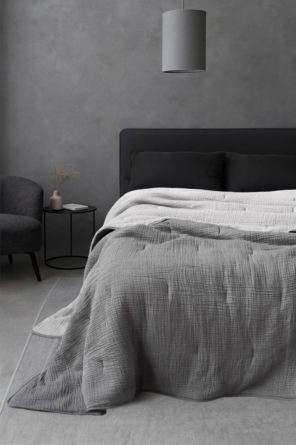 Made from 100% cotton and soft, wiry textured fabric, Koza Quilt will allow you to sleep hugging the clouds thanks to its fluffy inner filling. All edges are closed with bias tape and completed with embroidery details on the surface for a stylish look.