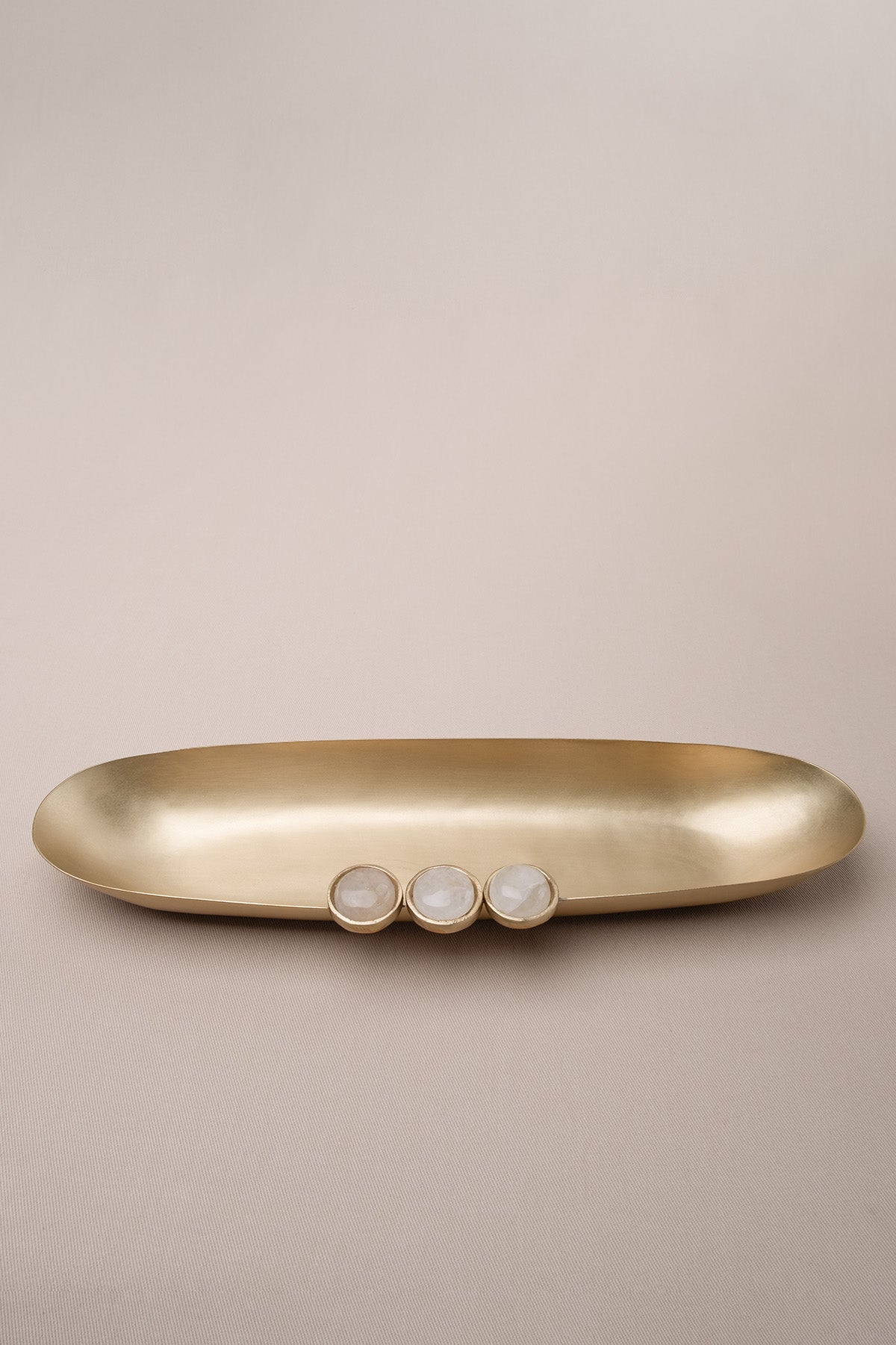 Poppins Mat Pirinç Oval Dekoratif Obje Gold 29x8x3 cm