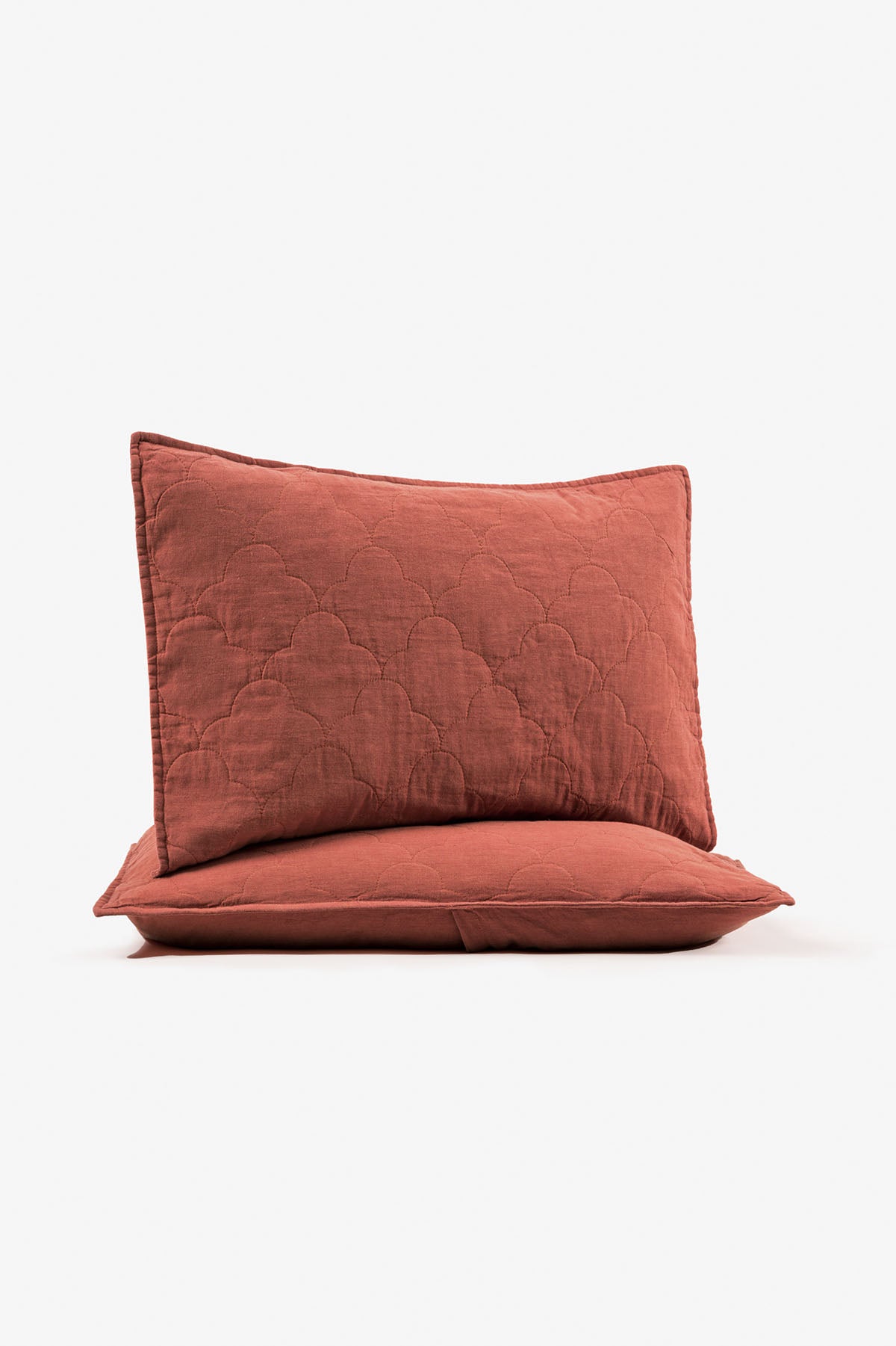 Serenity Quilted Linen Pillowcase Set of 2 Spicy Orange