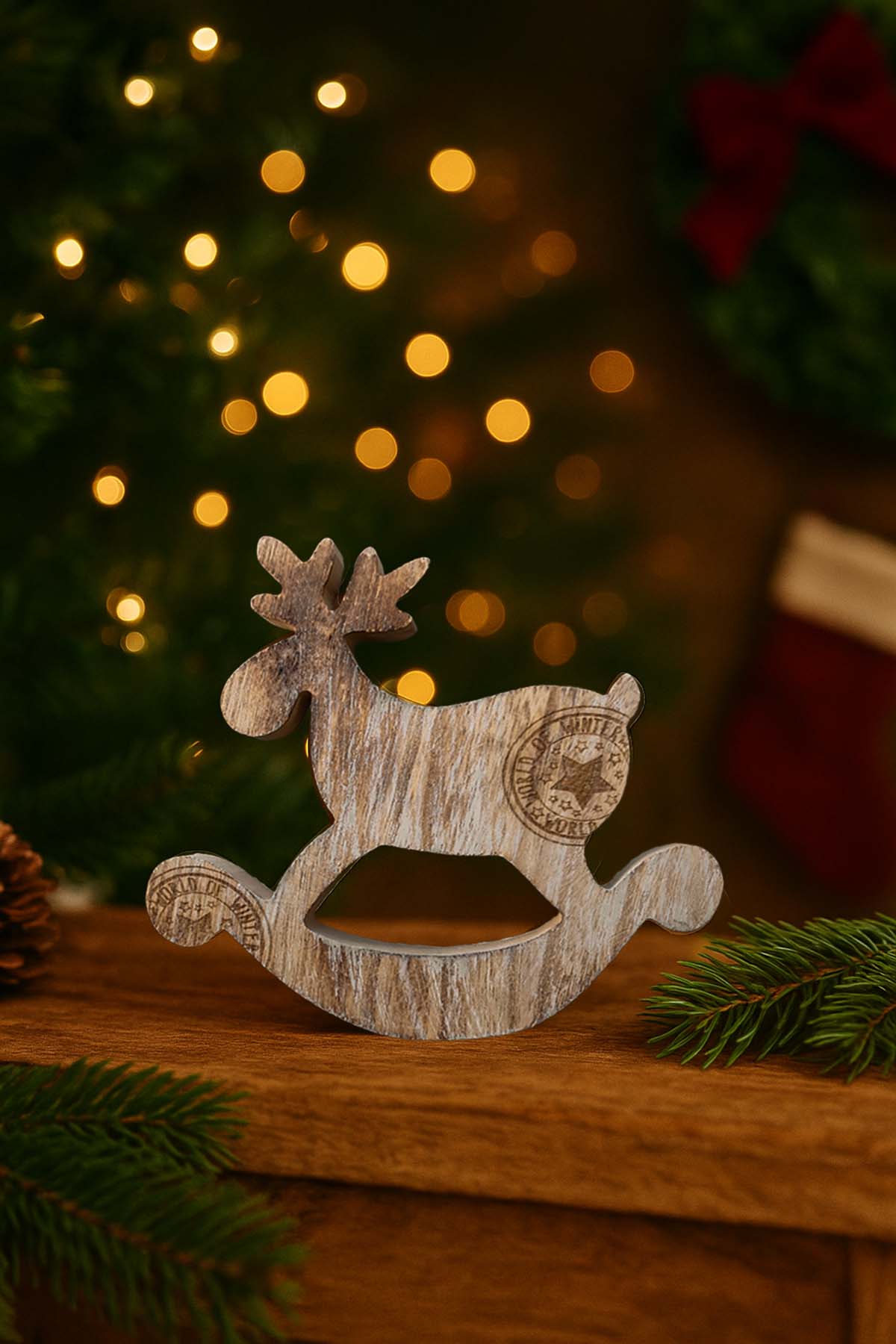 Doğal ahşaptan üretilen Sallanan Geyik Dekor, yılbaşı süslemelerine sıcak ve zarif bir dokunuş katar. Sallanan formu sayesinde dekorasyonunuza hareketli bir görünüm kazandırır. 20x18 cm ölçüsündeki bu parça, masa, raf veya pencere önü gibi alanlarda nostaljik bir yılbaşı atmosferi yaratır.