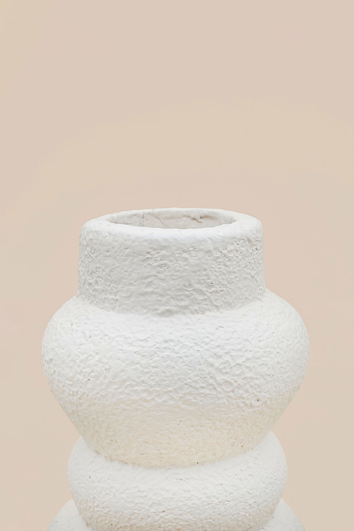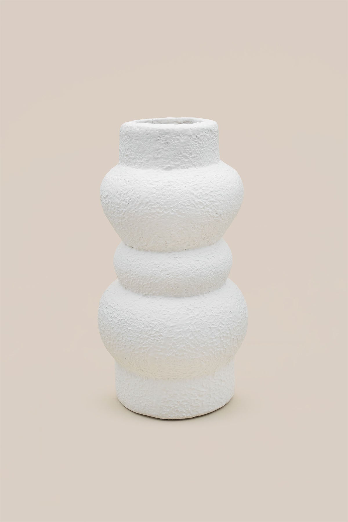 Heykelsi kıvrımlarıyla öne çıkan Aios Terrakotta Vazo, el yapımı dokusu ve mat beyaz yüzeyiyle yaşam alanlarına modern bir ifade kazandırır. Üç boyutlu dalgalı formu sayesinde tek başına dekoratif bir obje olarak güçlü bir etki yaratır.