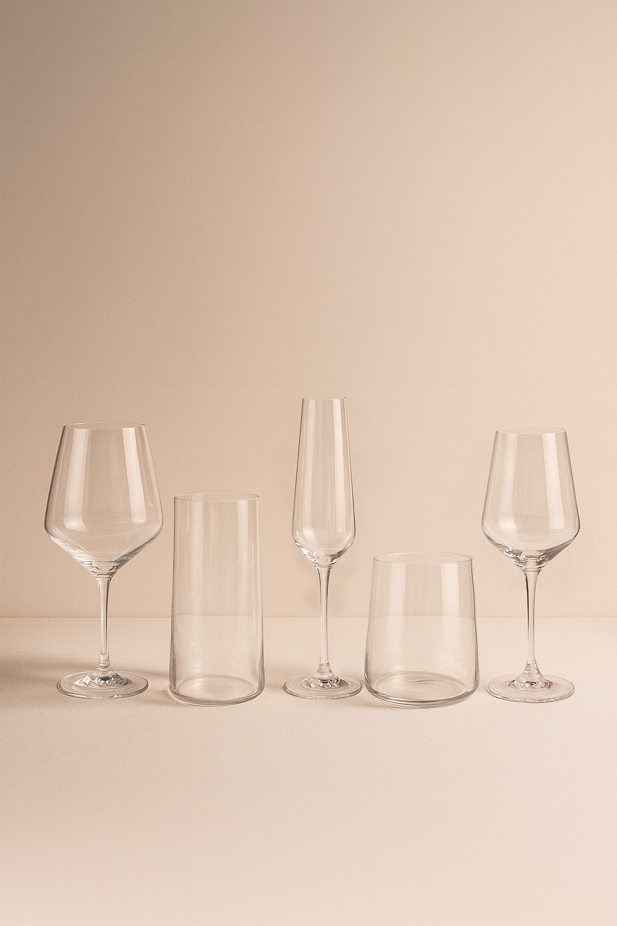 Set içeriği : 4 adet 540 ml meşrubat bardağı, 4 adet 490 ml su bardağı, 4 adet 390 ml kırmızı şarap kadehi, 4 adet 380 ml beyaz şarap kadehi ve 4 adet 180 ml şampanya flüt kadehi.