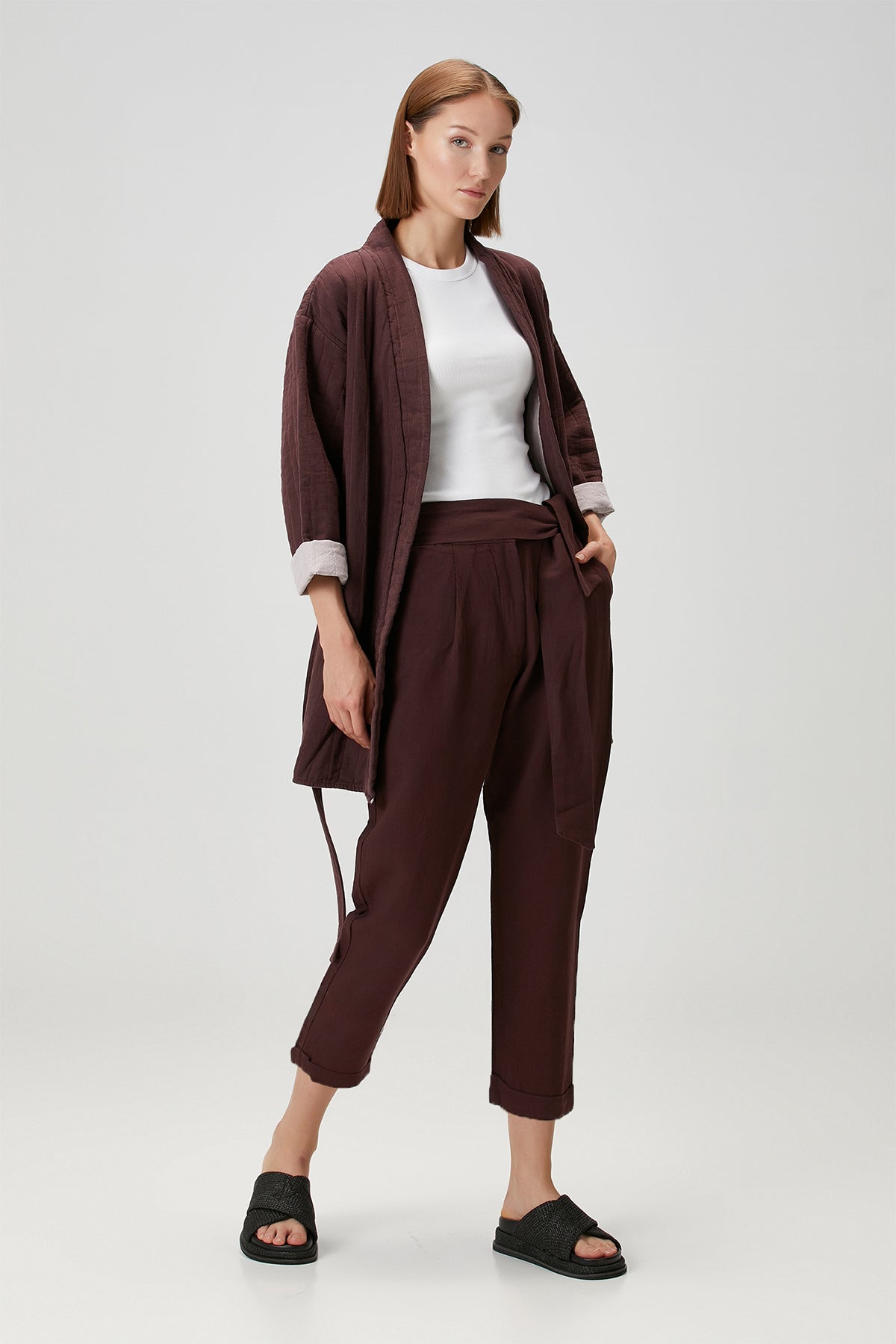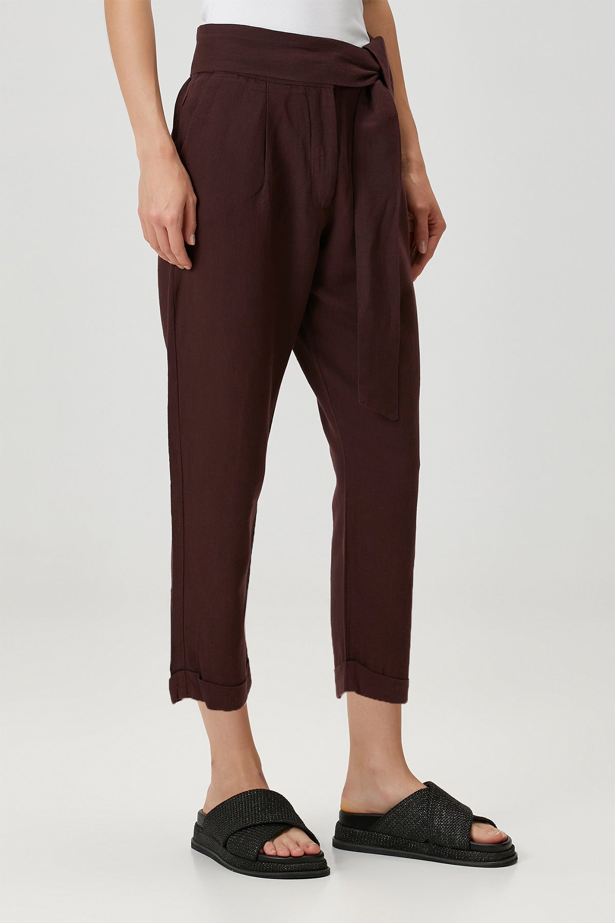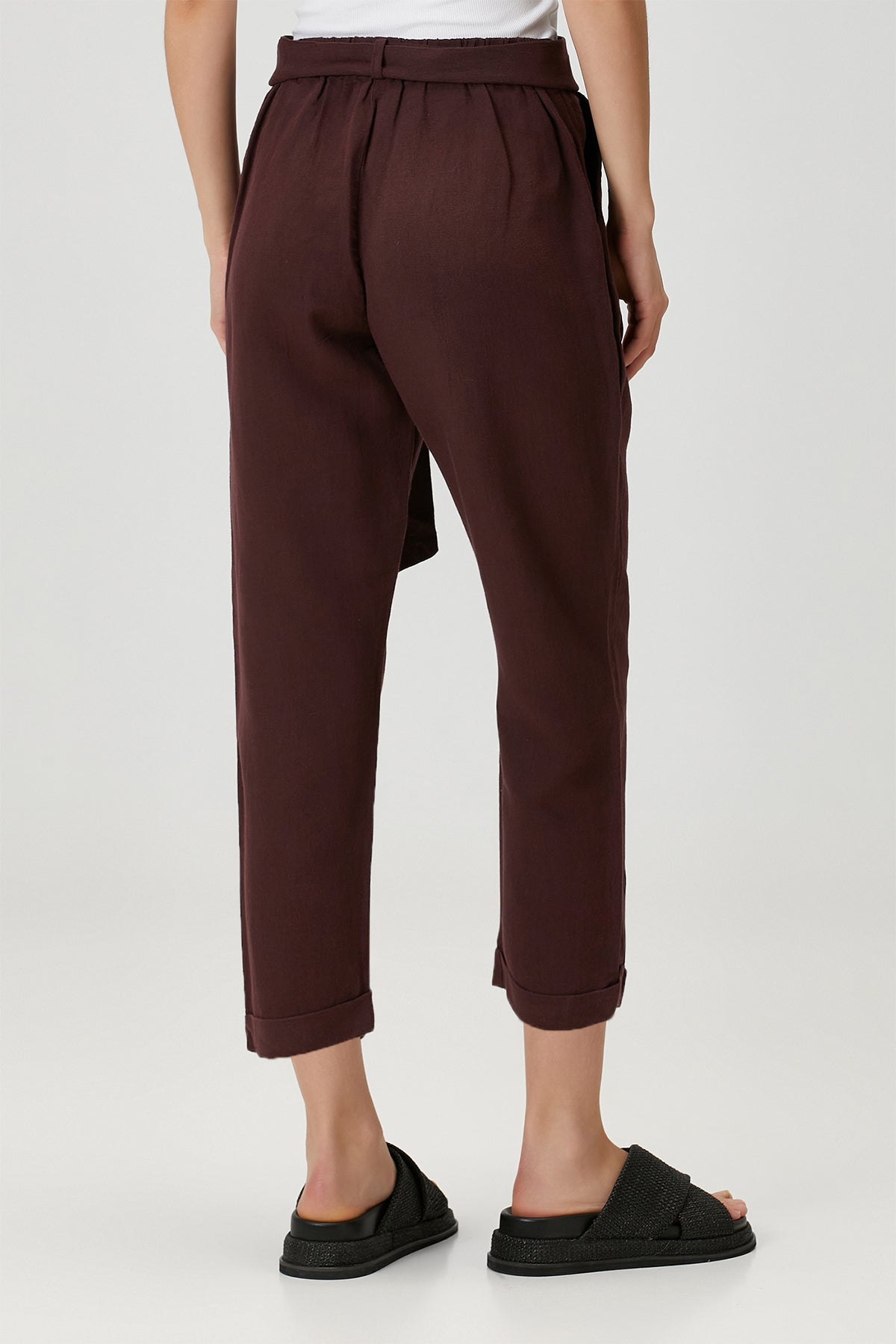 Kemerli Keten Karışımlı Pantolon, şıklığı ve konforu bir arada sunan zamansız bir parçadır. %65 keten ve %35 pamuk karışımı kumaşı, nefes alabilir yapısıyla ilkbahar ve yaz aylarında serin bir kullanım sağlar. Yumuşak dokusu ve doğal keten görünümü sayesinde stilinize zarif bir dokunuş katar. Rahat kesimiyle gün boyu konfor sunan pantolon, kemer detayıyla modern bir görünüm elde etmenizi sağlar. Makinede yıkanabilir özelliğiyle pratik ve uzun ömürlüdür.