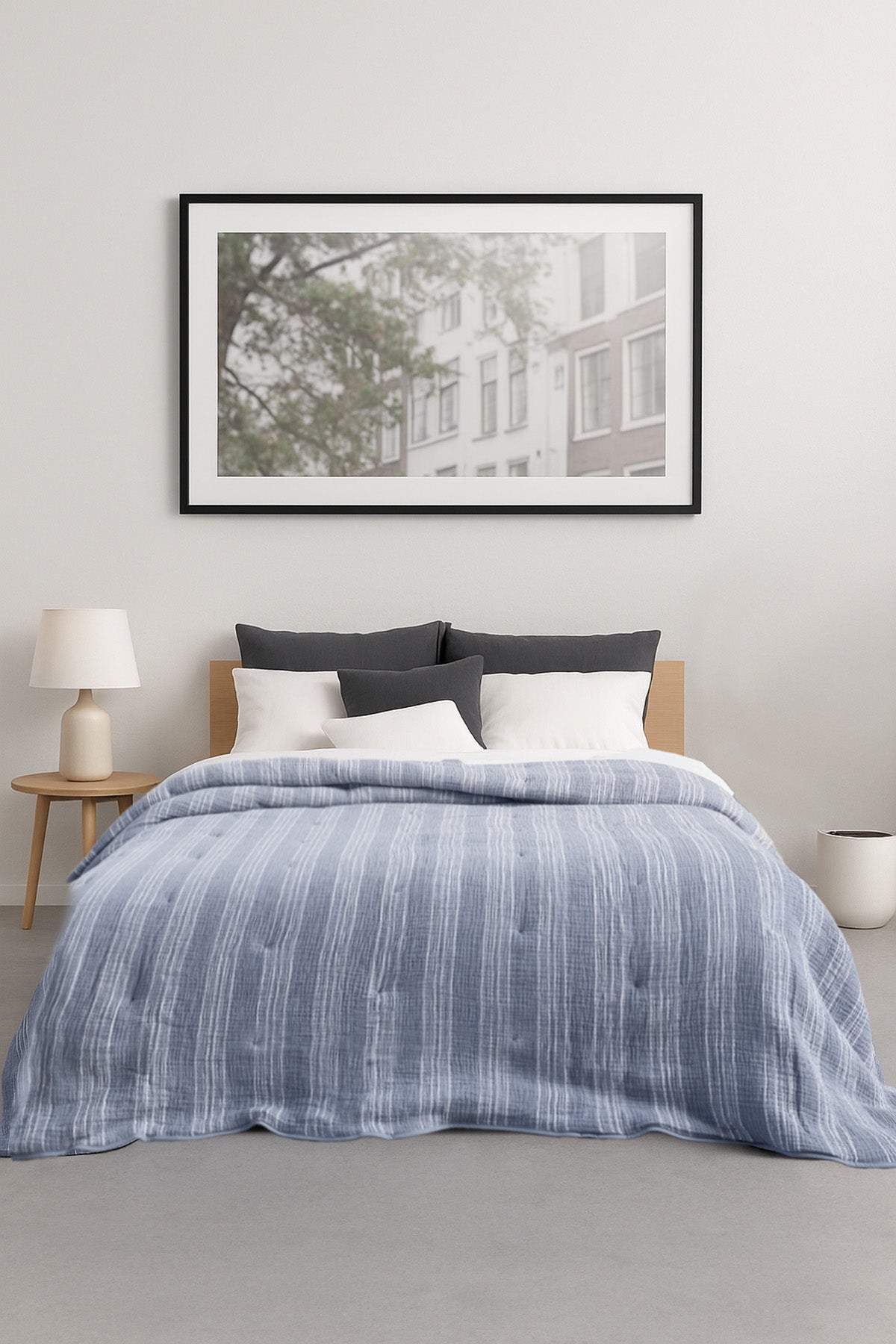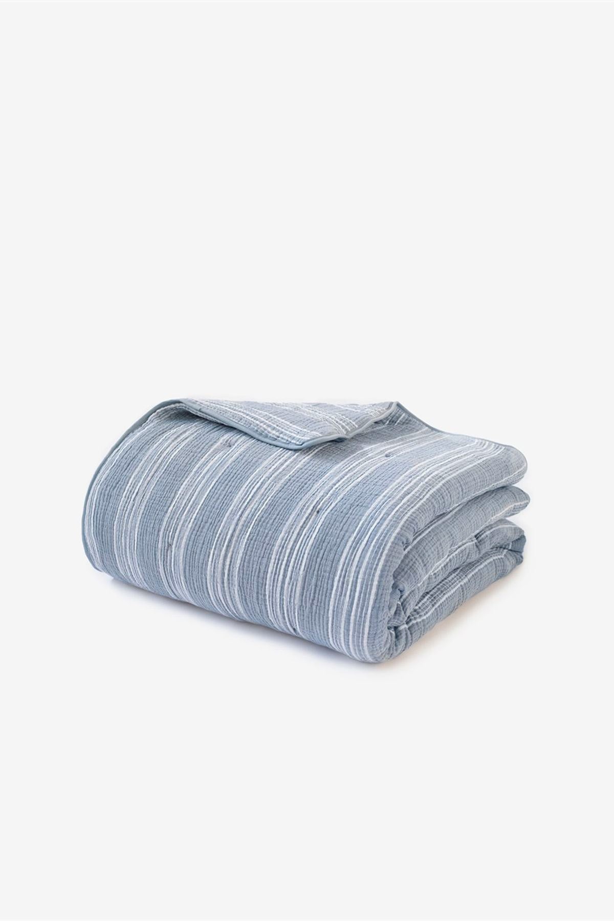Çizgili 4 katlı Gauze Yorgan, Yatak Örtüsü Mavi