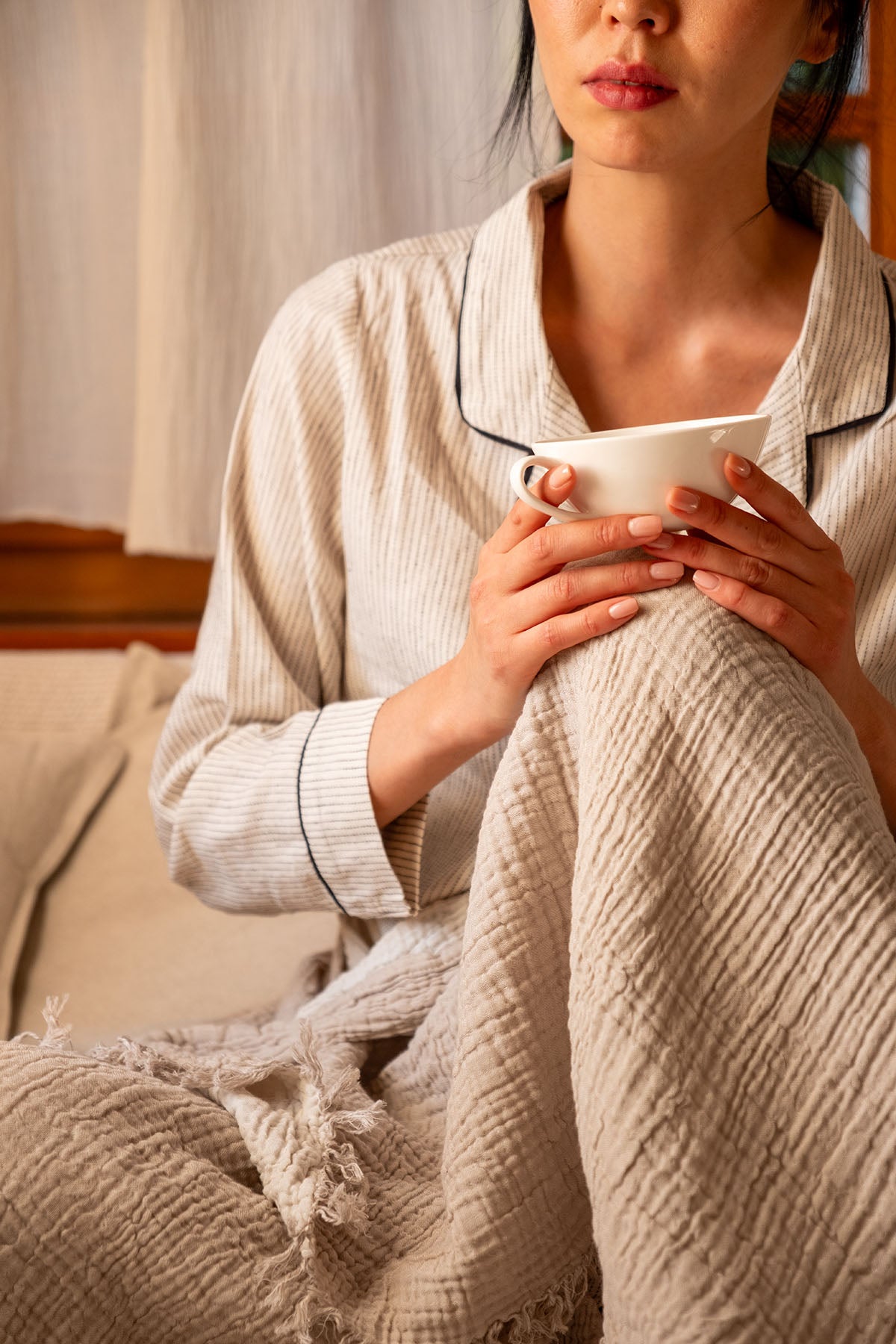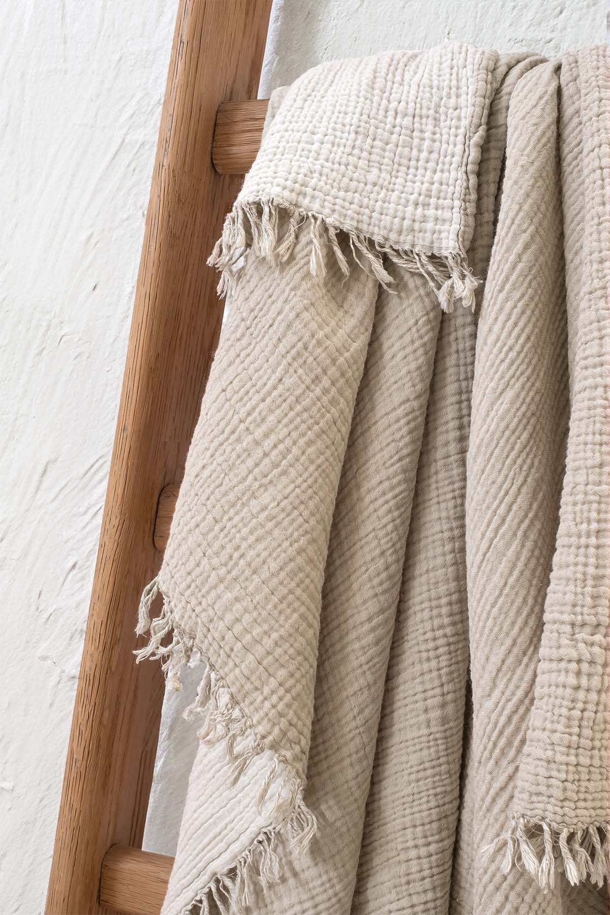 Cocoon 4 Katlı Müslin Koltuk Şalı, Battaniye Bej