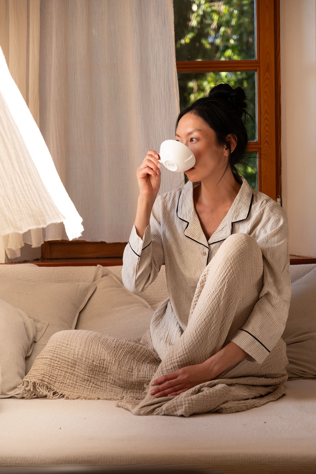 Cocoon 4 Katlı Müslin Koltuk Şalı Battaniye, %100 pamuk dokusu ve bürümcük efektli tasarımıyla yumuşaklık, konfor ve estetik sunar. Çift taraflı kullanımı sayesinde farklı dekorasyon stillerine uyum sağlar, yumuşacık yapısıyla sıcaklık ve rahatlık katar.