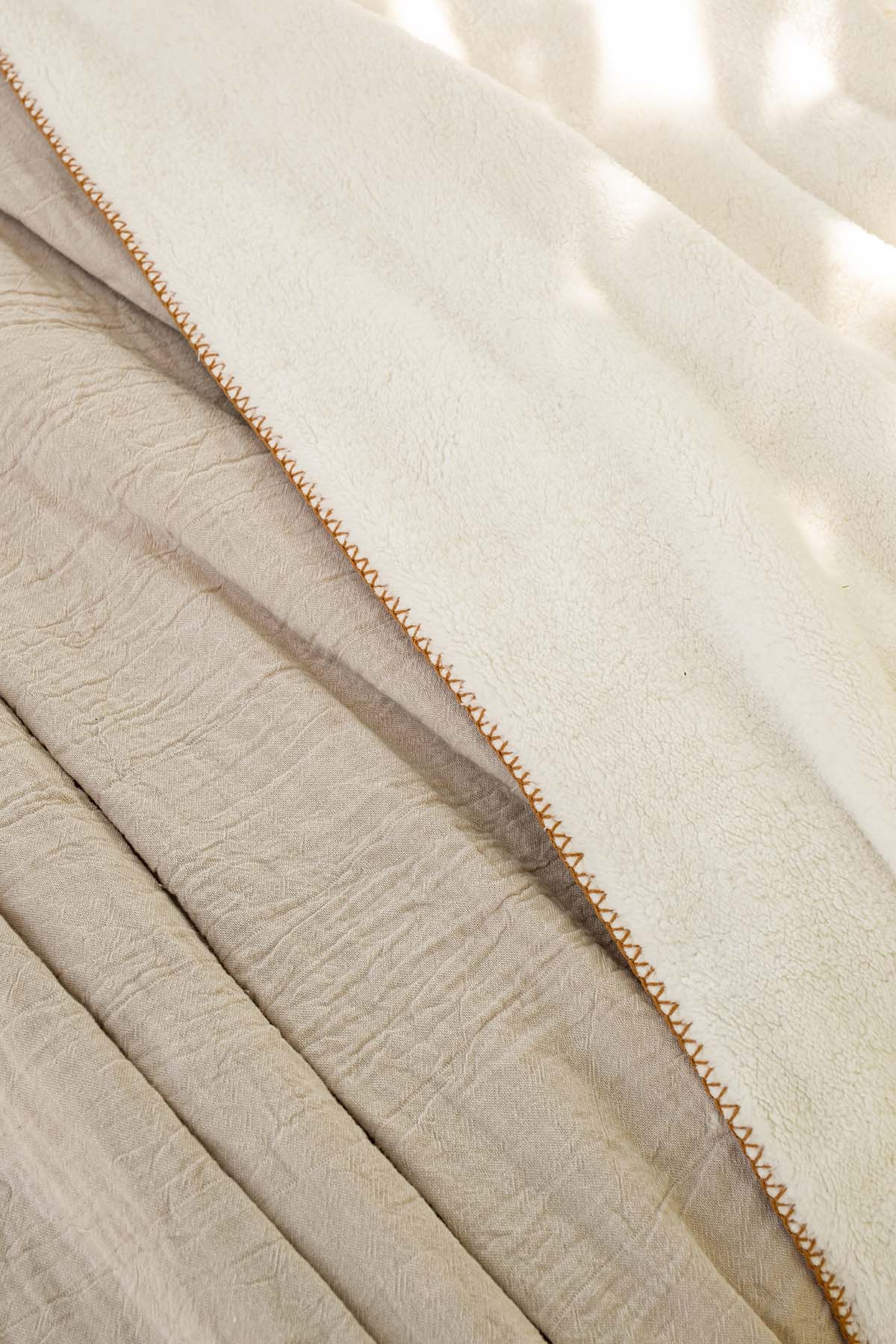 Cozy Arkası Peluşlu Pamuk Yatak Örtüsü Bej