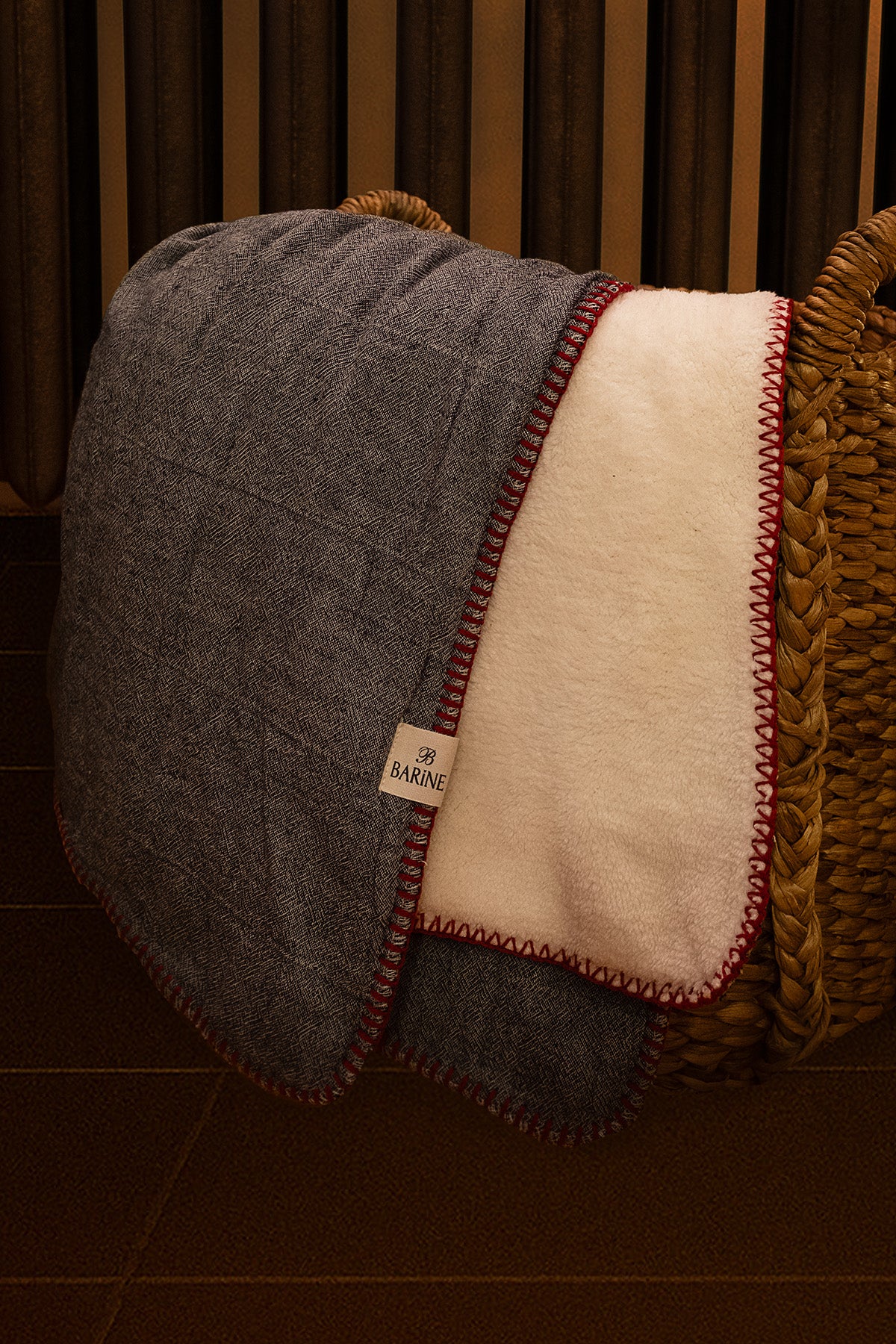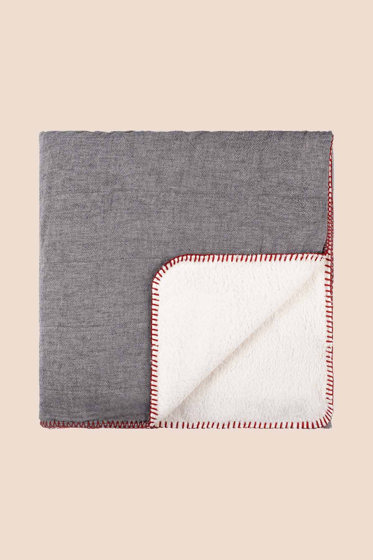 Cozy Dekoratif Dikişli Arkası Peluşlu Koltuk Şalı Battaniye Gri