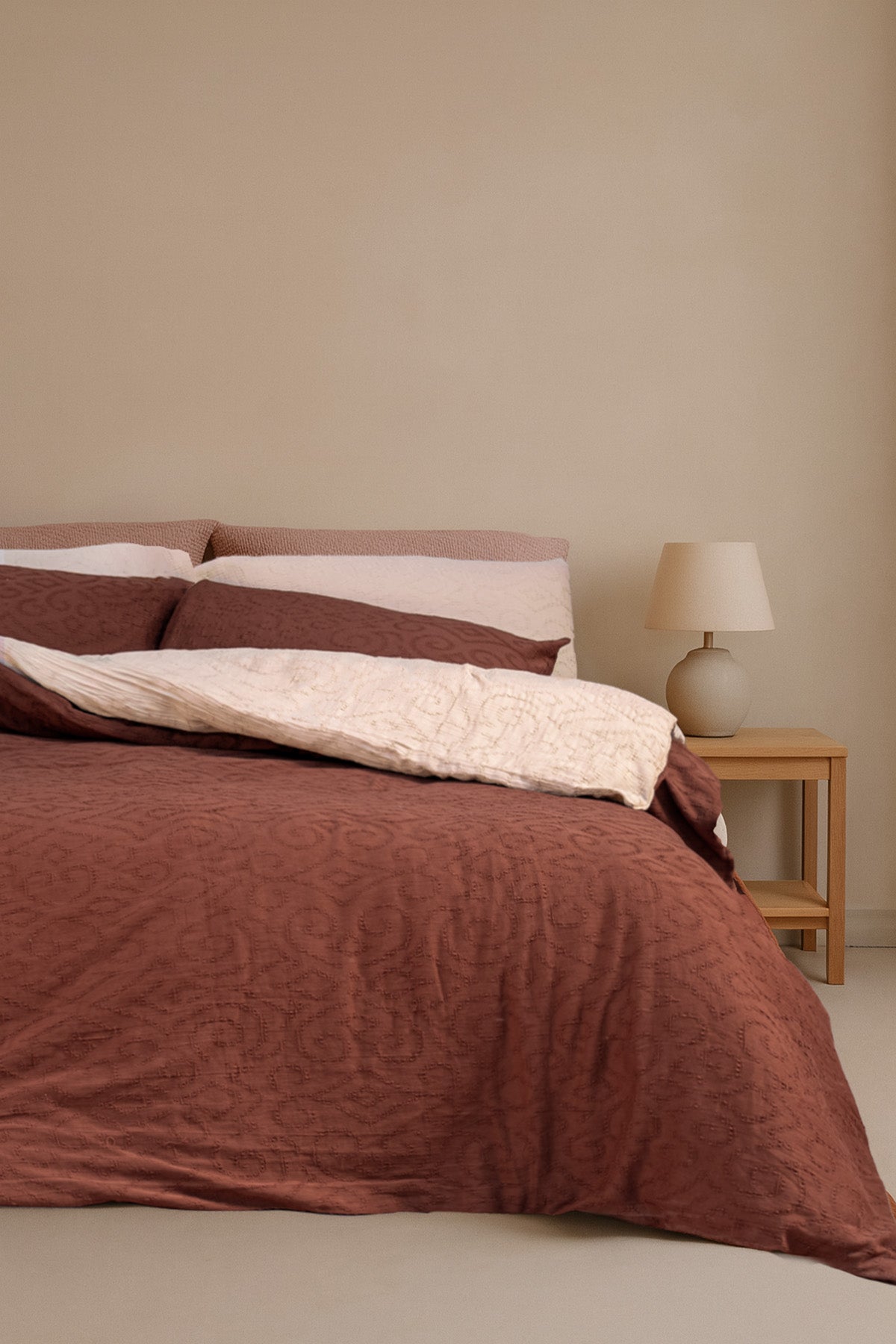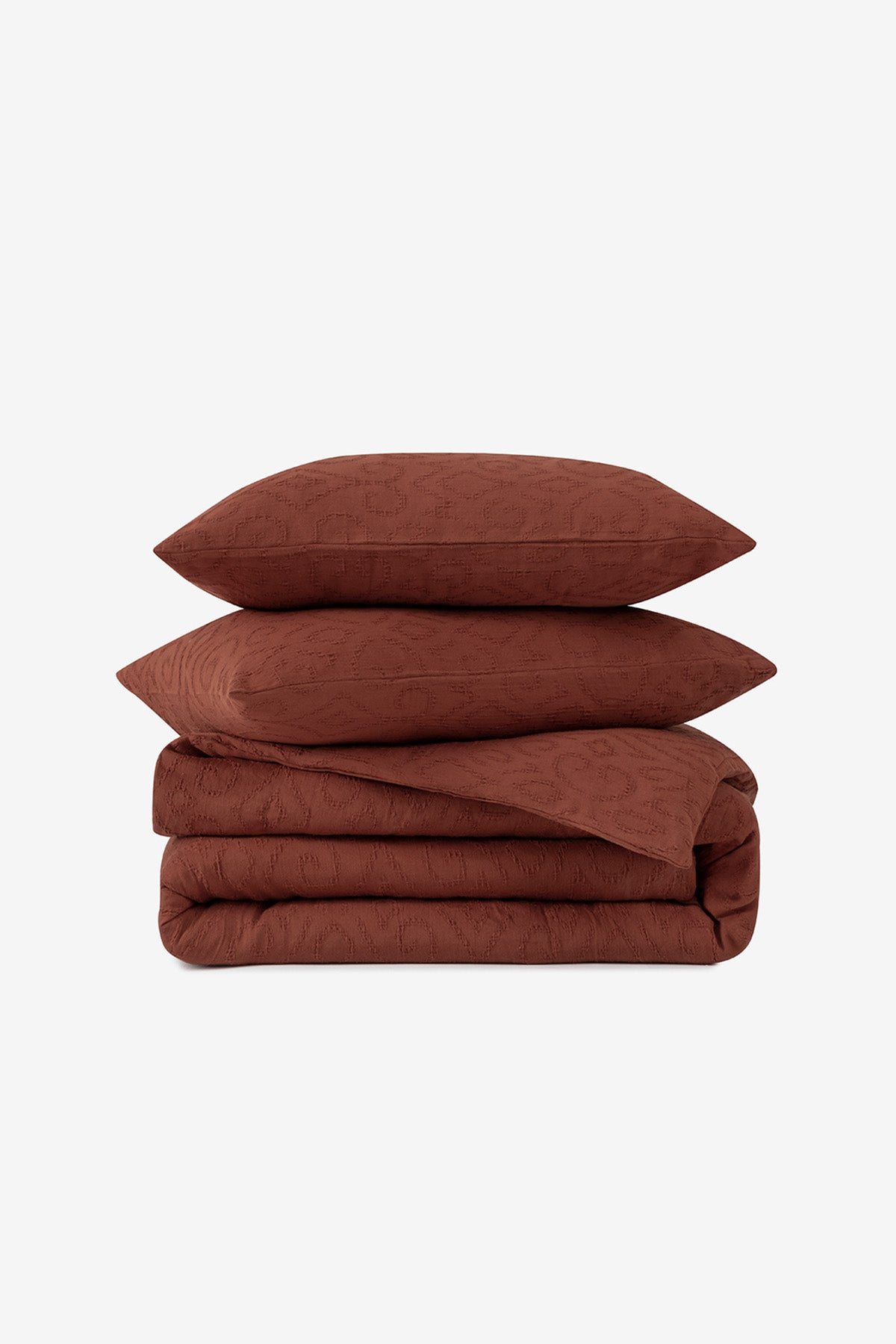 Damask Jakarlı Çift Kişilik Nevresim Seti Kızıl Toprak