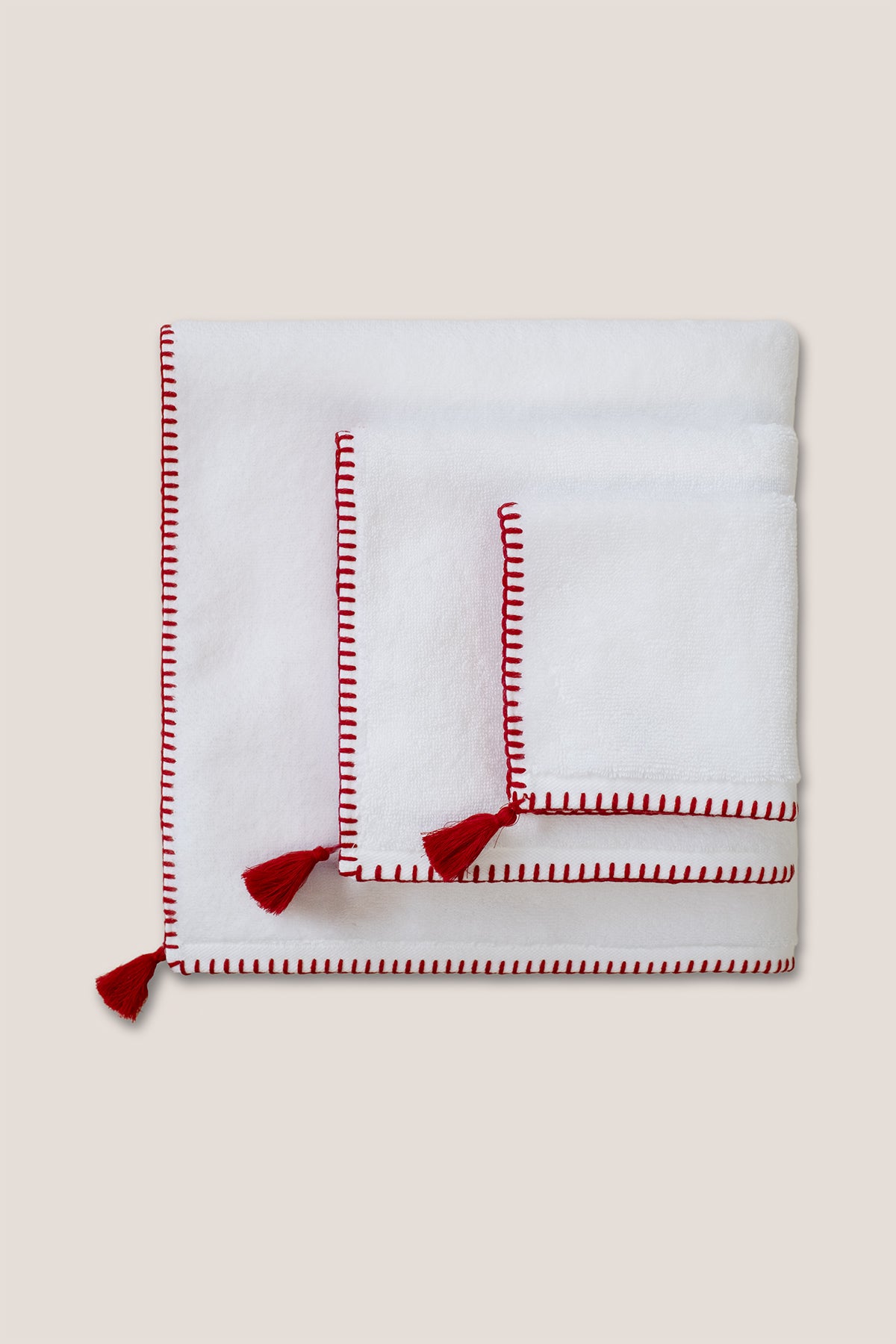Zarif dikiş ve püskül detaylarıyla öne çıkan %100 pamuk havlu, yumuşak ve hacimli dokusu ile banyolara şıklık katar. 30x30, 50x90 ve 70x140 cm ebatlarda sunulur.