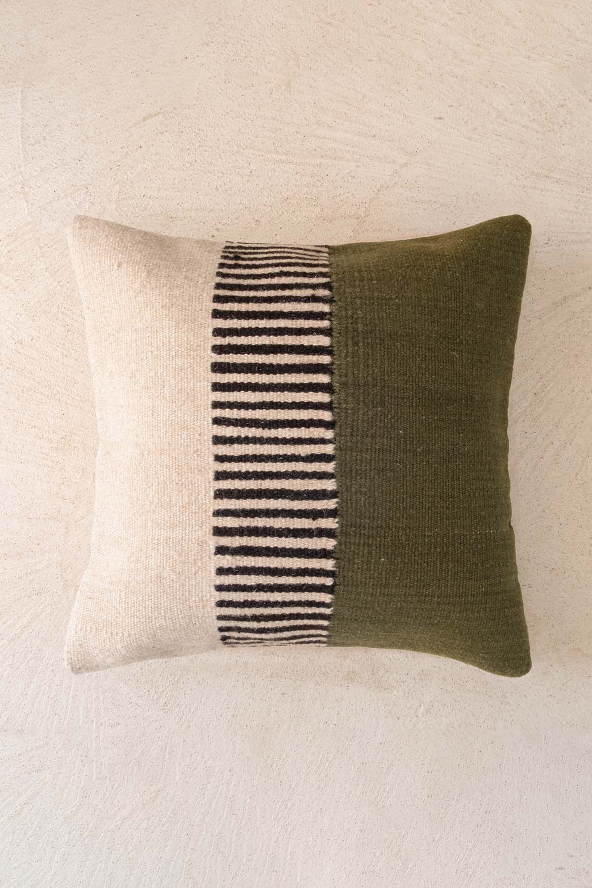 Doğrusal Çizgili El Dokuması Yün Kırlent Kılıfı Yeşil