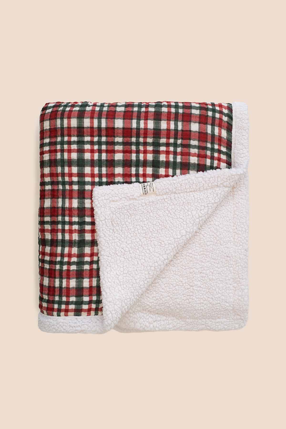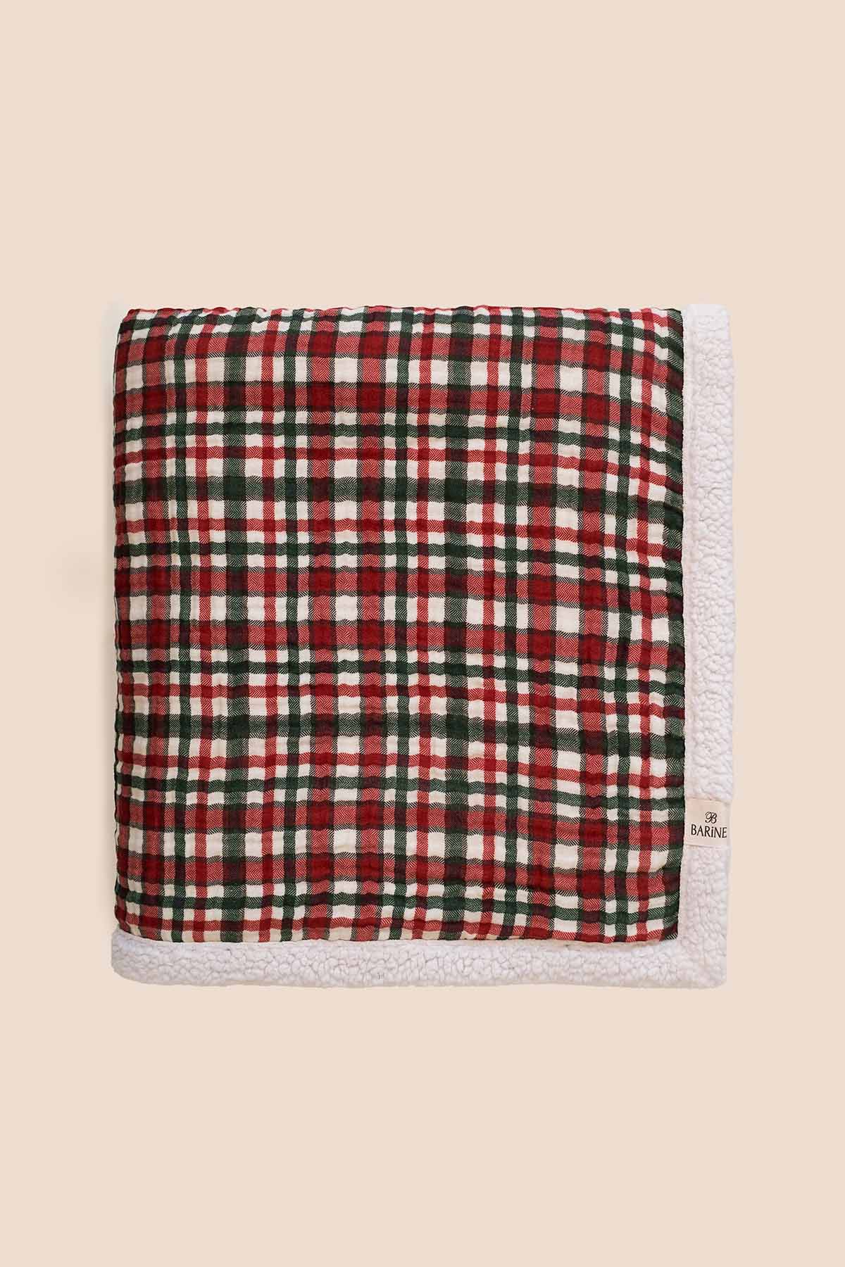 Ekose Desenli Pamuk Arkası Peluşlu Çift Taraflı Koltuk Şalı Battaniye Kırmızı