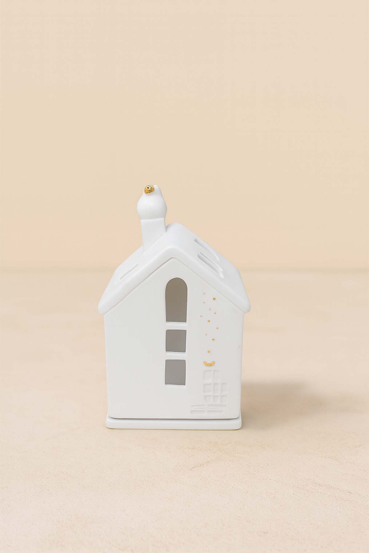 Minimal beyaz porselenden tasarlanan Ev Şeklinde Mumluk, pencere detaylarından yayılan ışıkla mekâna sıcak ve masalsı bir atmosfer kazandırır. 7x7x13 cm ölçüsüyle raf, konsol ve masa düzenlerinde dekoratif bir vurgu oluşturur. Kış ve yılbaşı dekorasyonları için ideal, modern ve zarif bir tamamlayıcıdır.