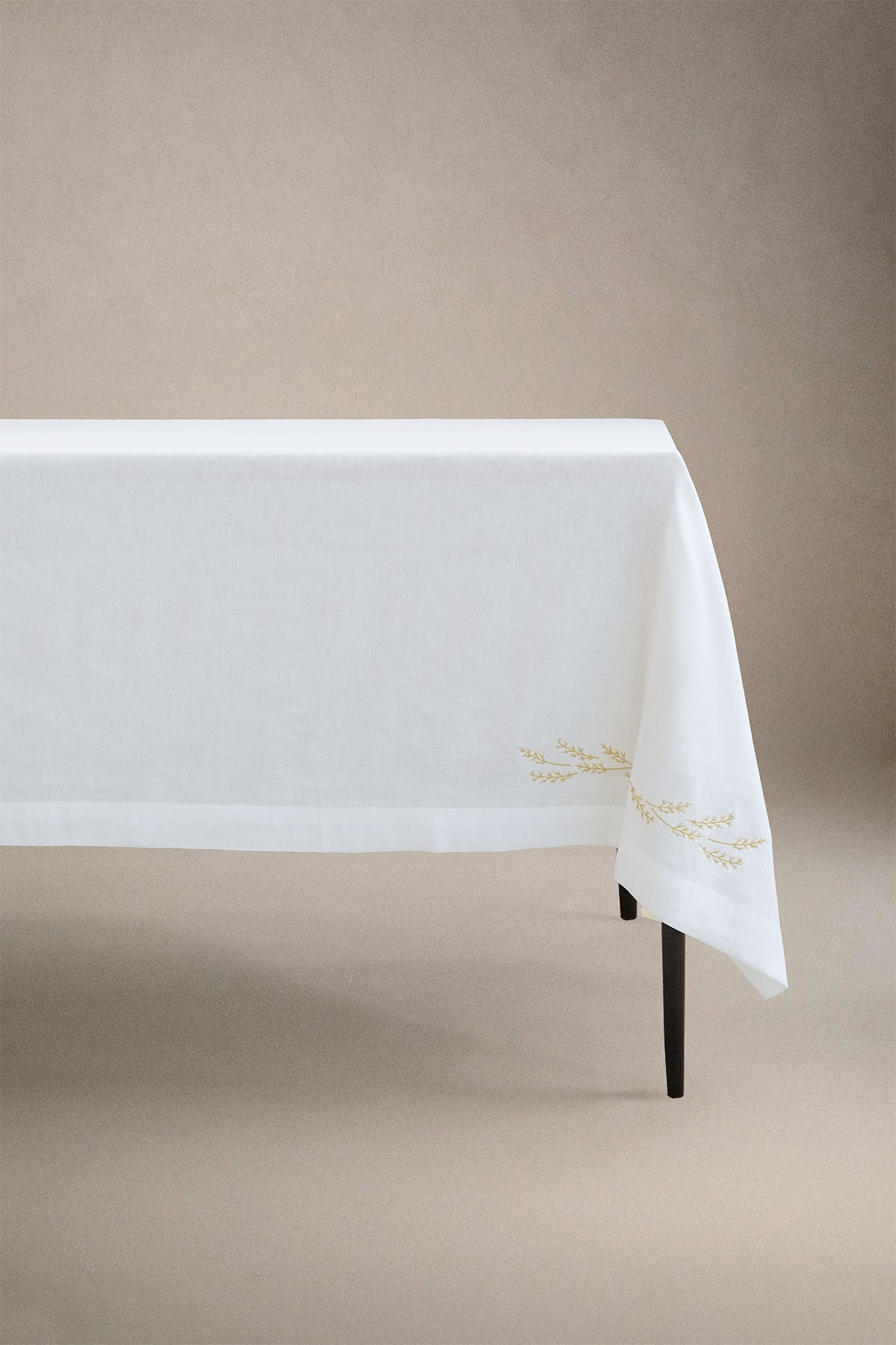 Yaprak Nakışlı Keten Masa Örtüsü