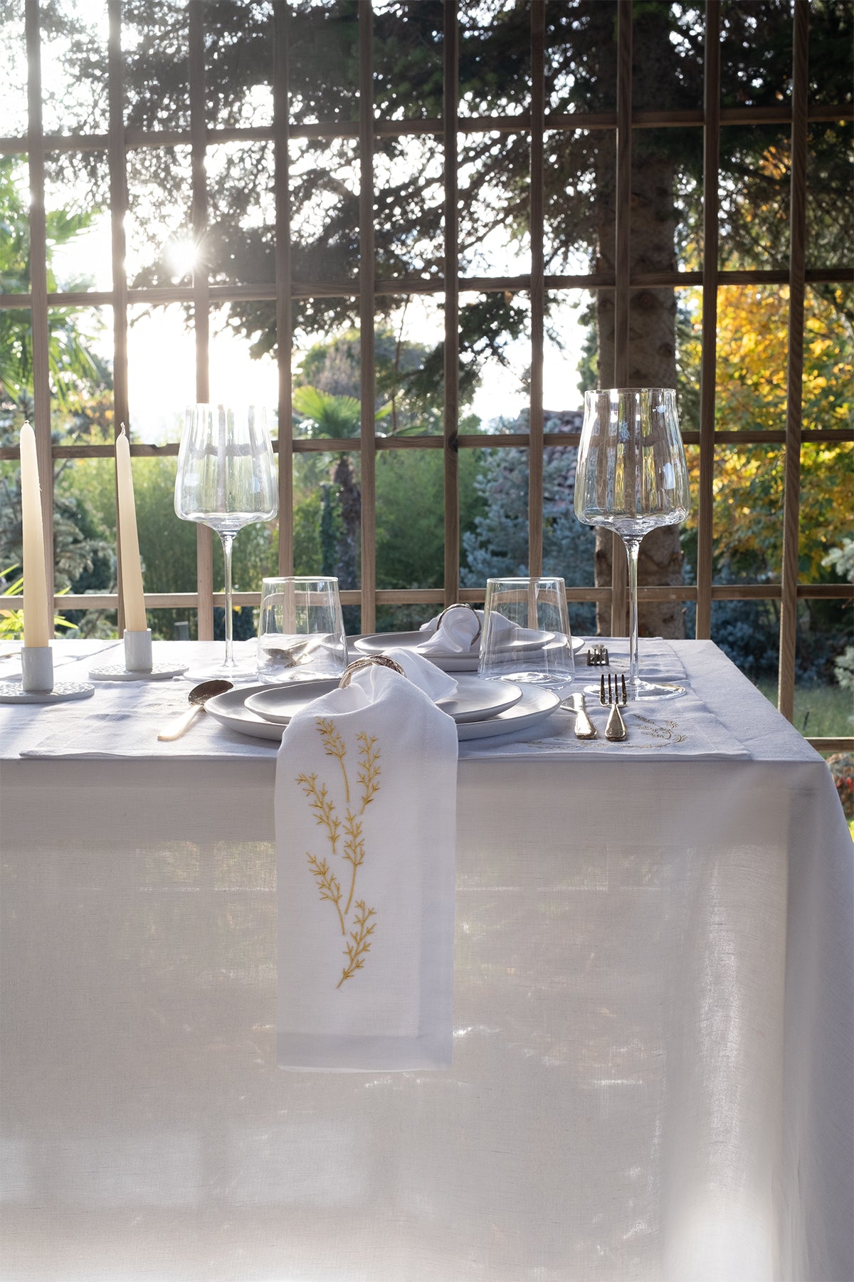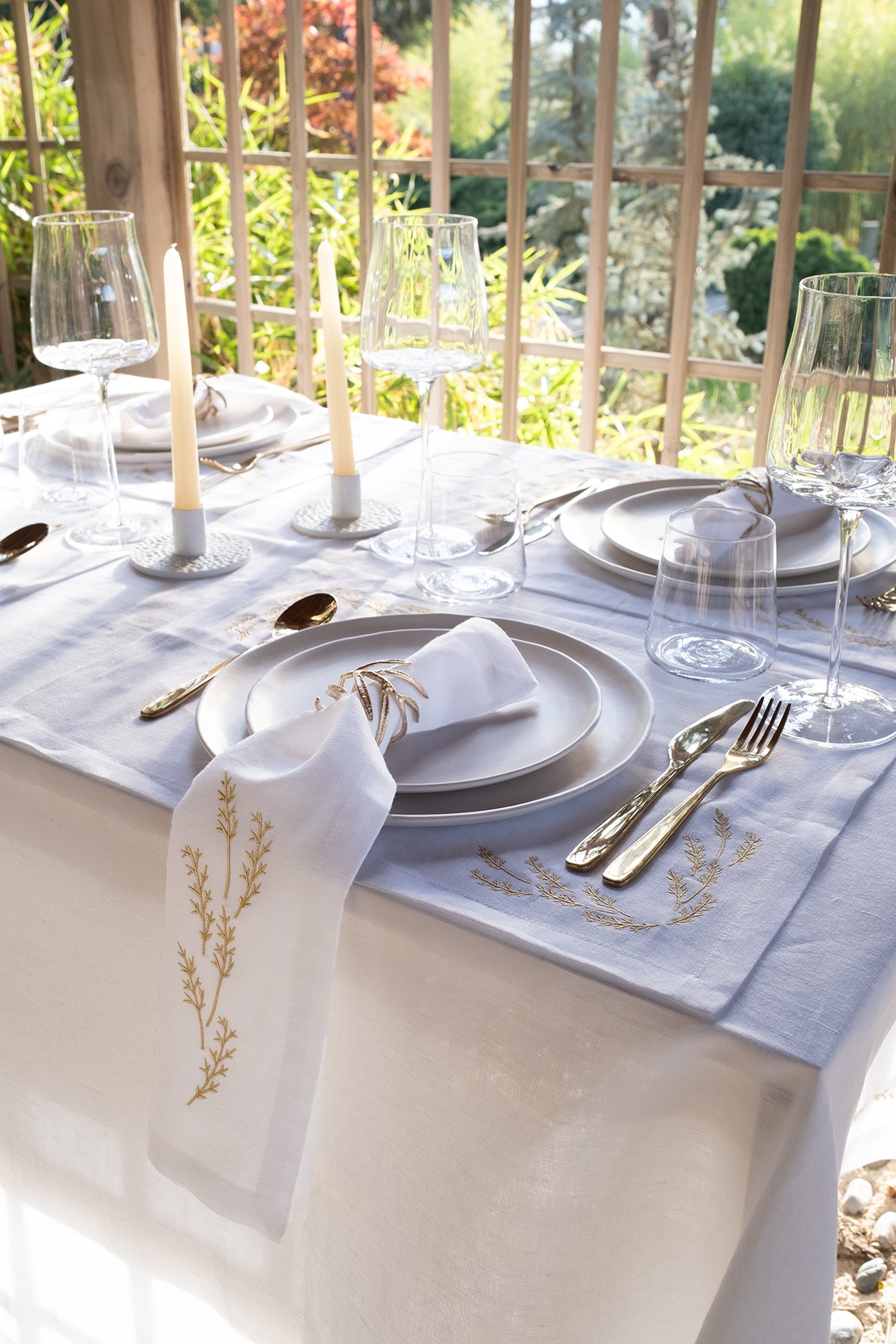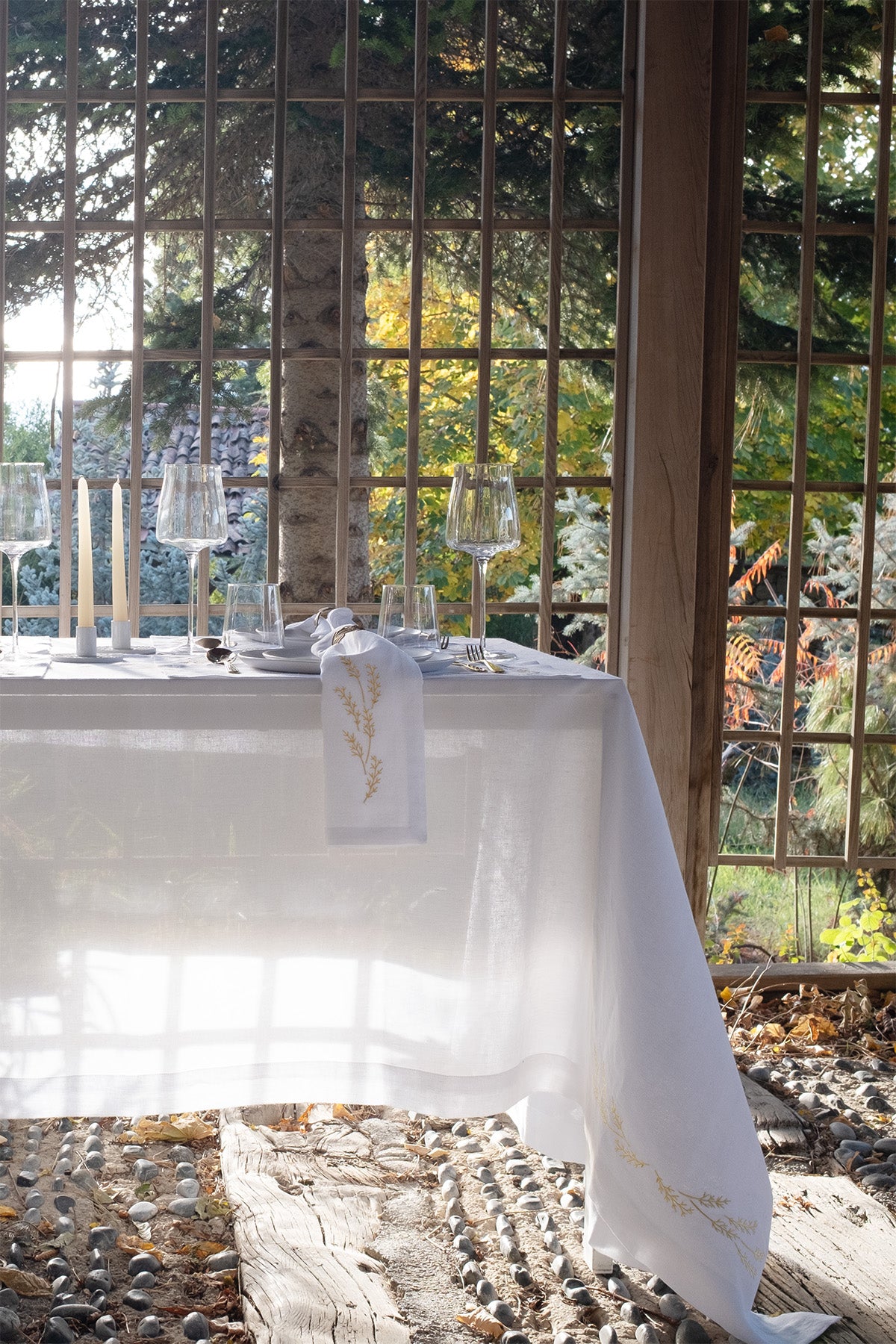 Doğal keten kumaştan üretilen ve zarif yaprak nakışlarıyla süslenen bu masa örtüsü, sofralara zamansız bir şıklık ve rafine bir dokunuş getirir. İnce işçiliğe sahip yaprak desenleri, masa düzeninize doğal bir zarafet katarken, ketenin dokusu modern ve klasik stillerle uyumlu bir görünüm sunar. Özel davetlerden günlük kullanıma kadar her ortamda şık ve dengeli bir atmosfer yaratmak isteyenler için ideal bir seçimdir.