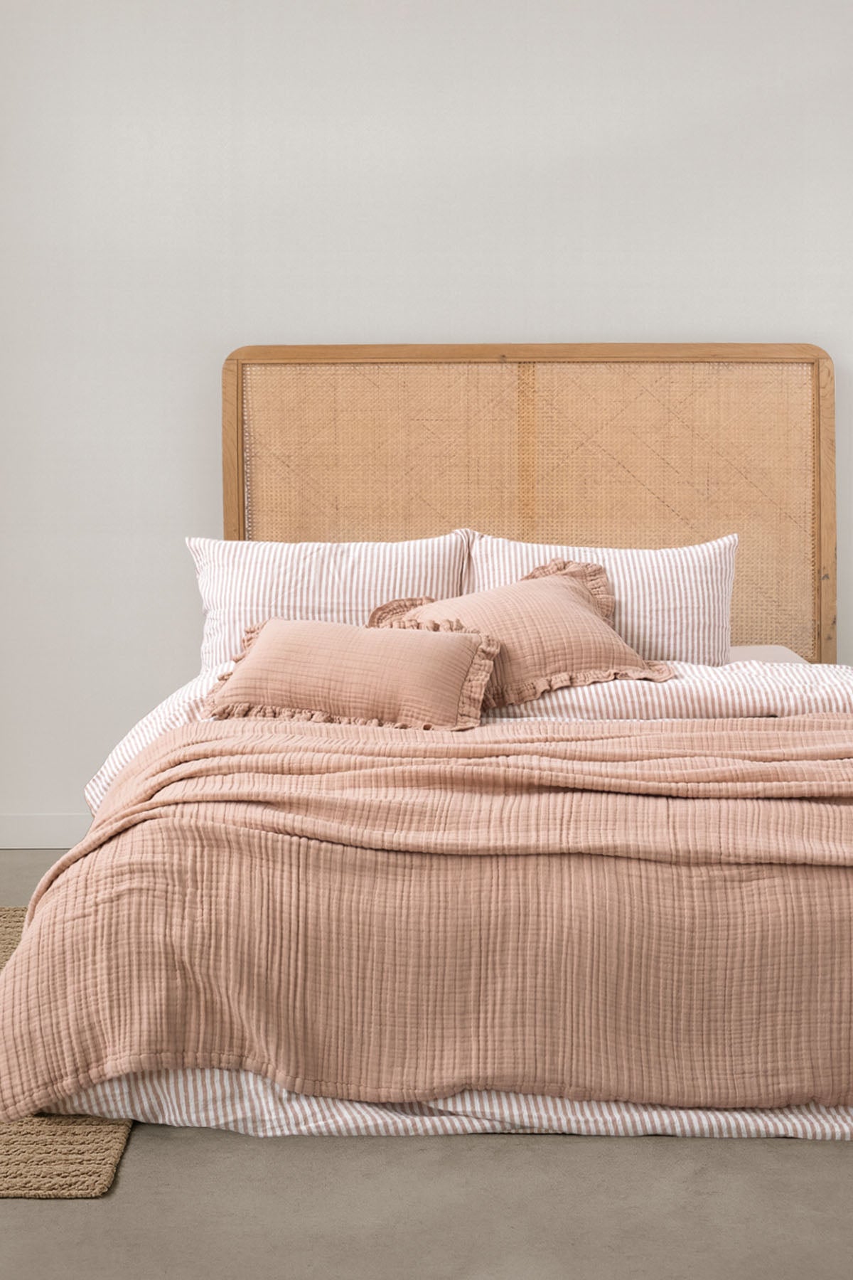 Keten 4 Katlı Müslin Yatak Örtüsü Pudra Pembe