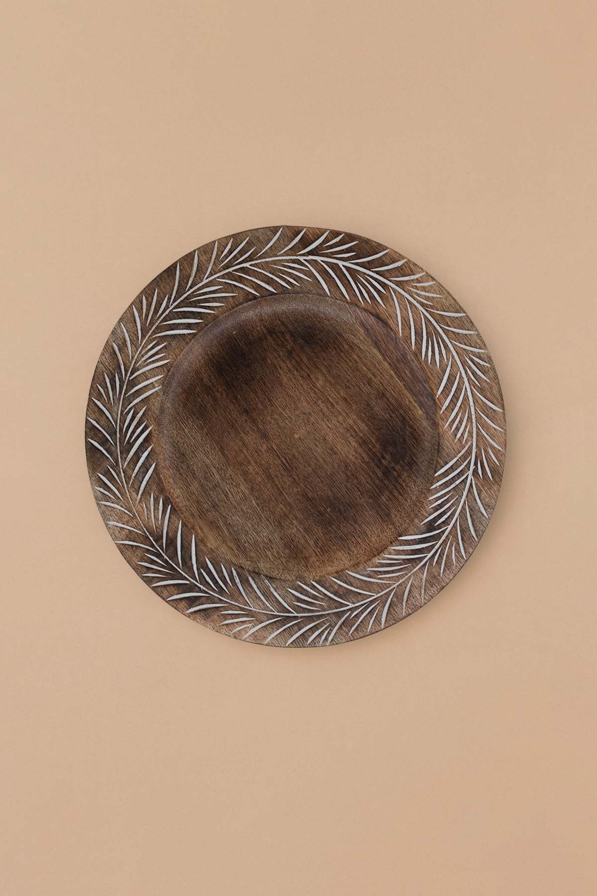 Mango Ağacından Dışı Yaprak Desenli Yuvarlak Sunum Tabağı, Supla 30 cm
