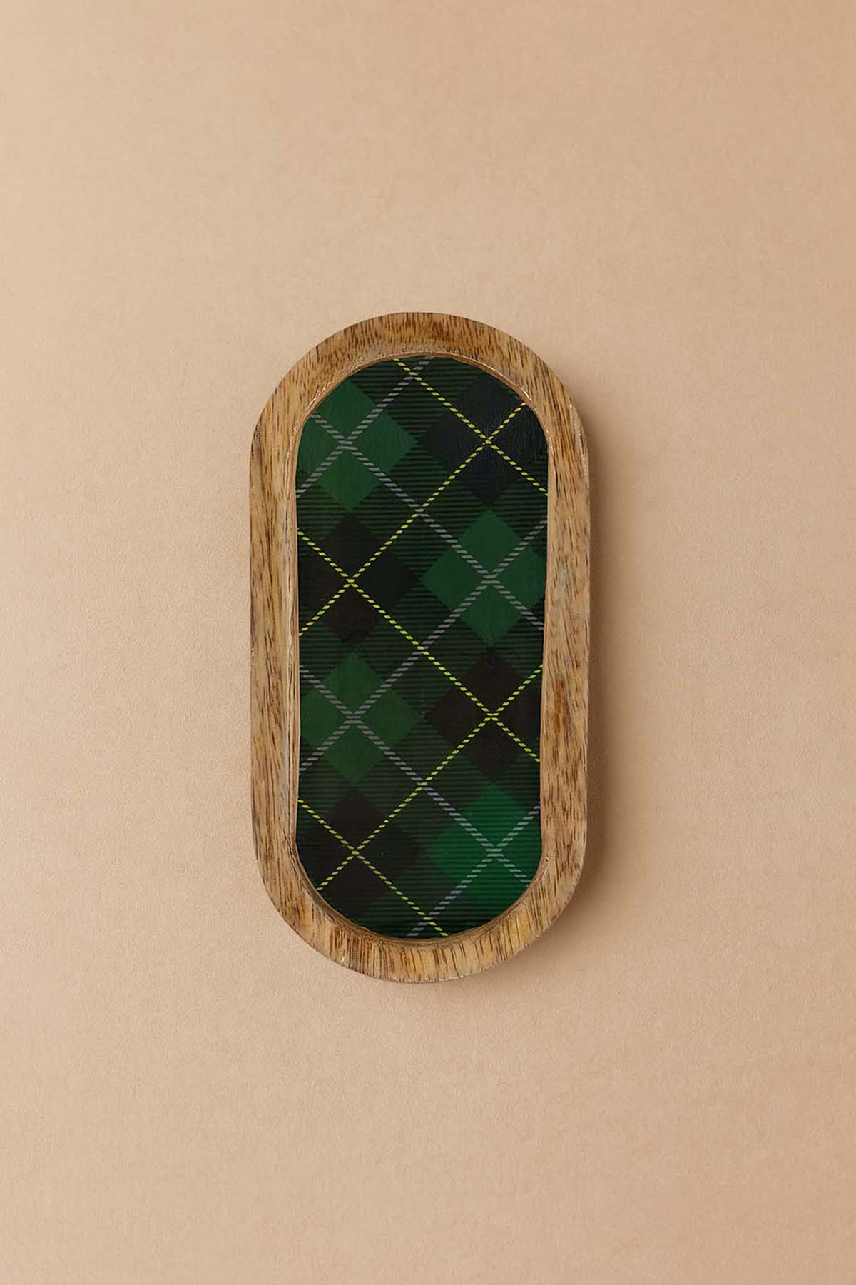 Mango Ağacından Ekose Desenli Oval Tepsi, Sunum Tabağı 20x10 cm