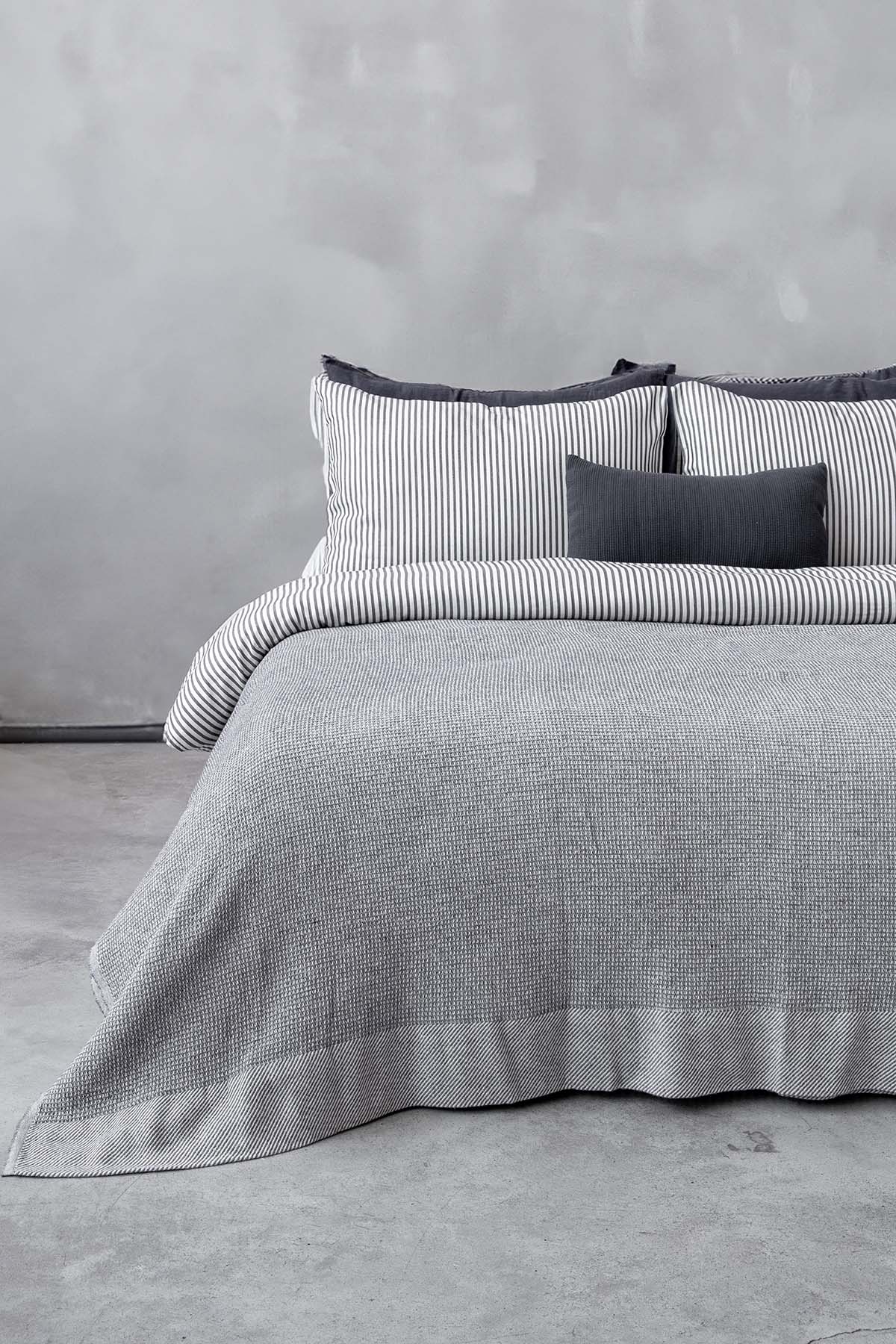 Pergamon Yünlü Dokulu Yatak Örtüsü Gri
