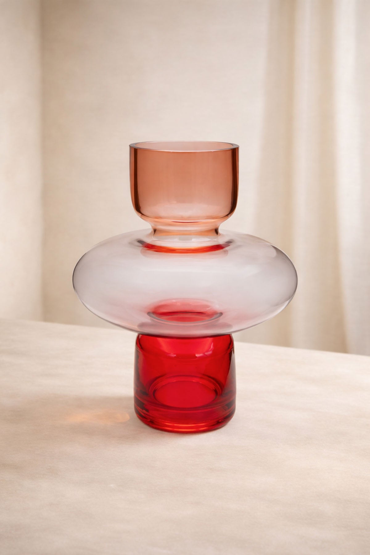 Renkli Katmanlı Cam Vazo Kırmızı 19x19x28 cm