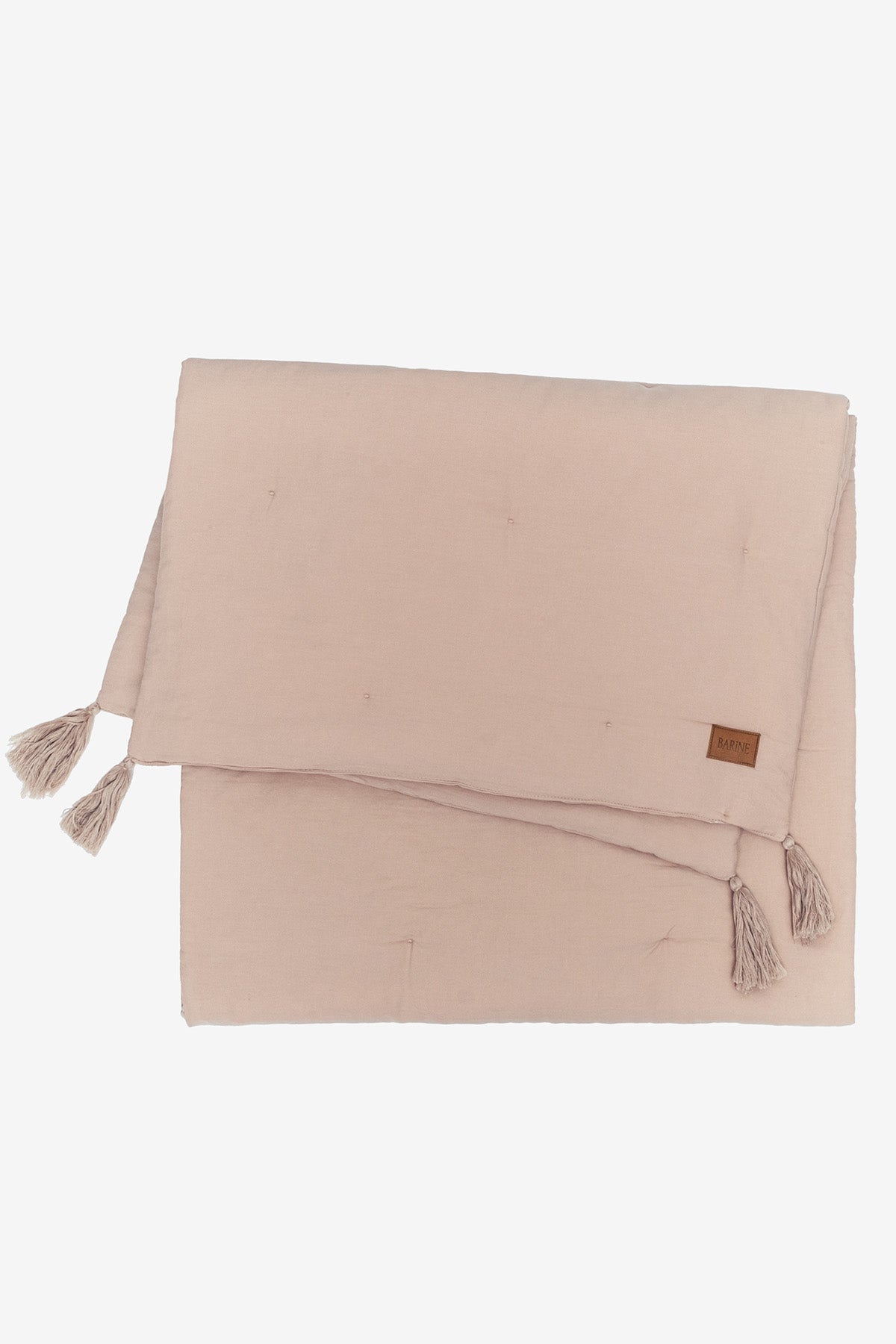 Smooth Yatak Runnerı, %100 pamuk dış kumaşı ve dolgulu yapısıyla yatak odanıza hem şıklık hem de konfor katar. Yumuşak dokusu ve zarif tasarımıyla dekorasyonunuzu tamamlayan bu runner, 70x240 cm ölçüsüyle modern bir dokunuş sunar.