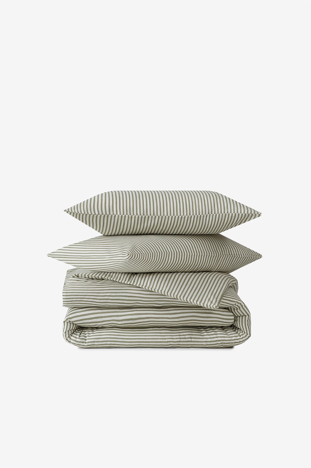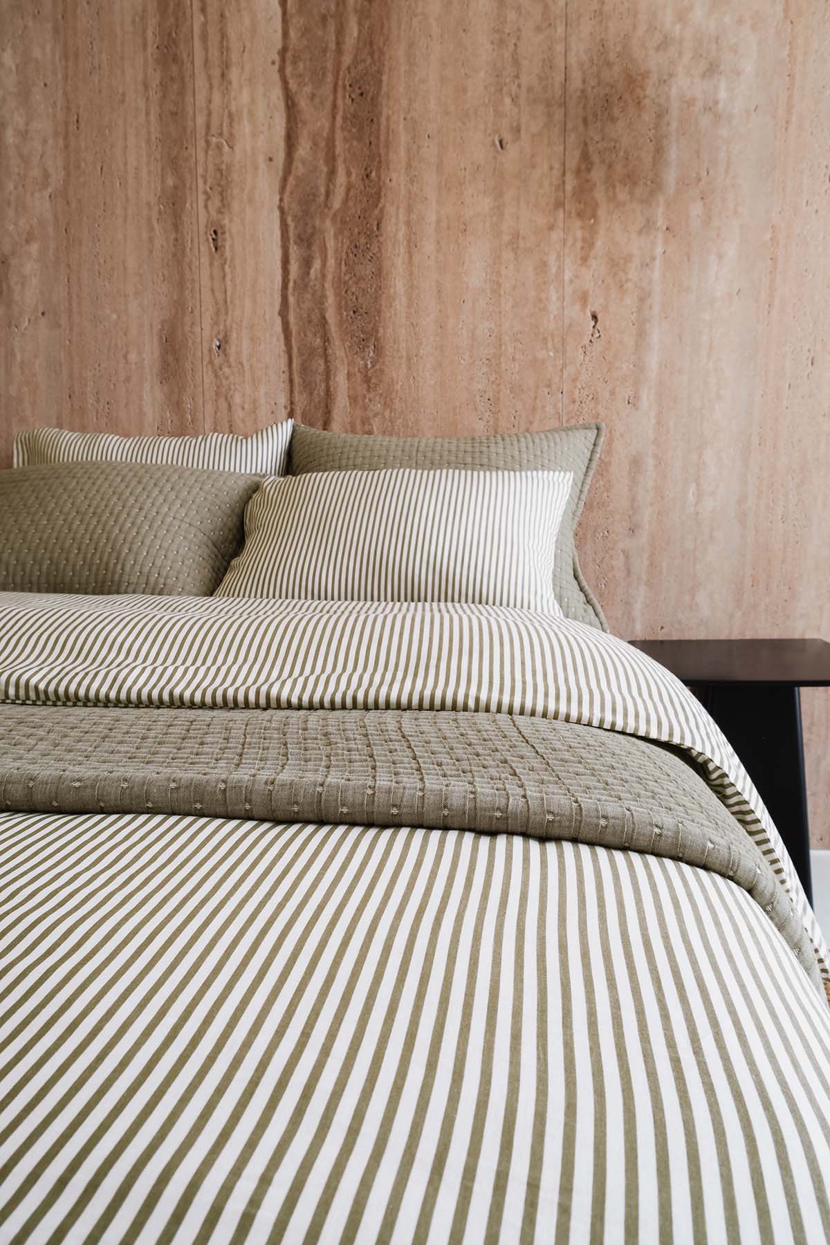 İnce Çizgili Pamuk Saten Çift Kişilik Nevresim Seti Yeşil