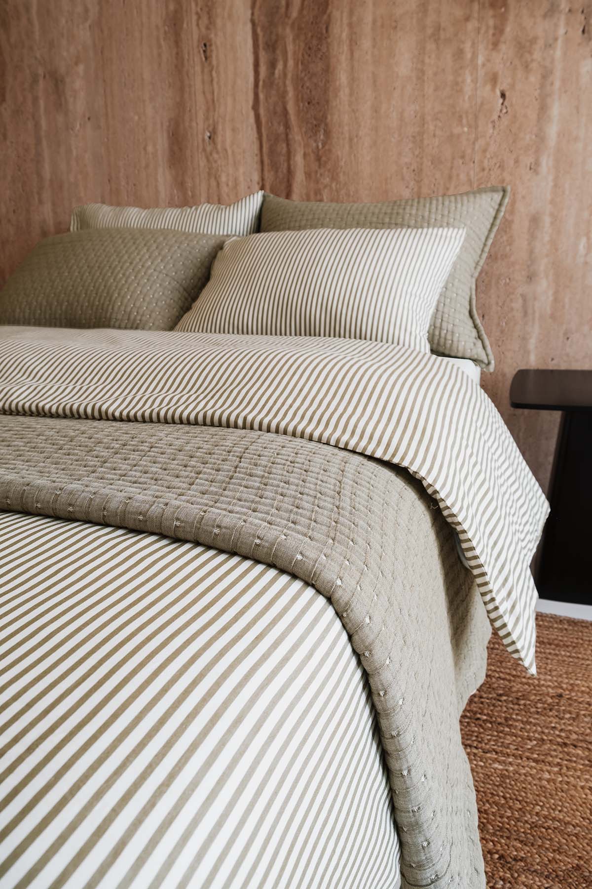 Doğal parlaklığı ve ipeksi dokusuyla öne çıkan Yeşil Çizgili Thin Line saten nevresim seti, zarif görünüm ile konforu bir araya getirir. Özel dokuması sayesinde yumuşak, hafif ve nefes alabilen bir uyku deneyimi sunar.