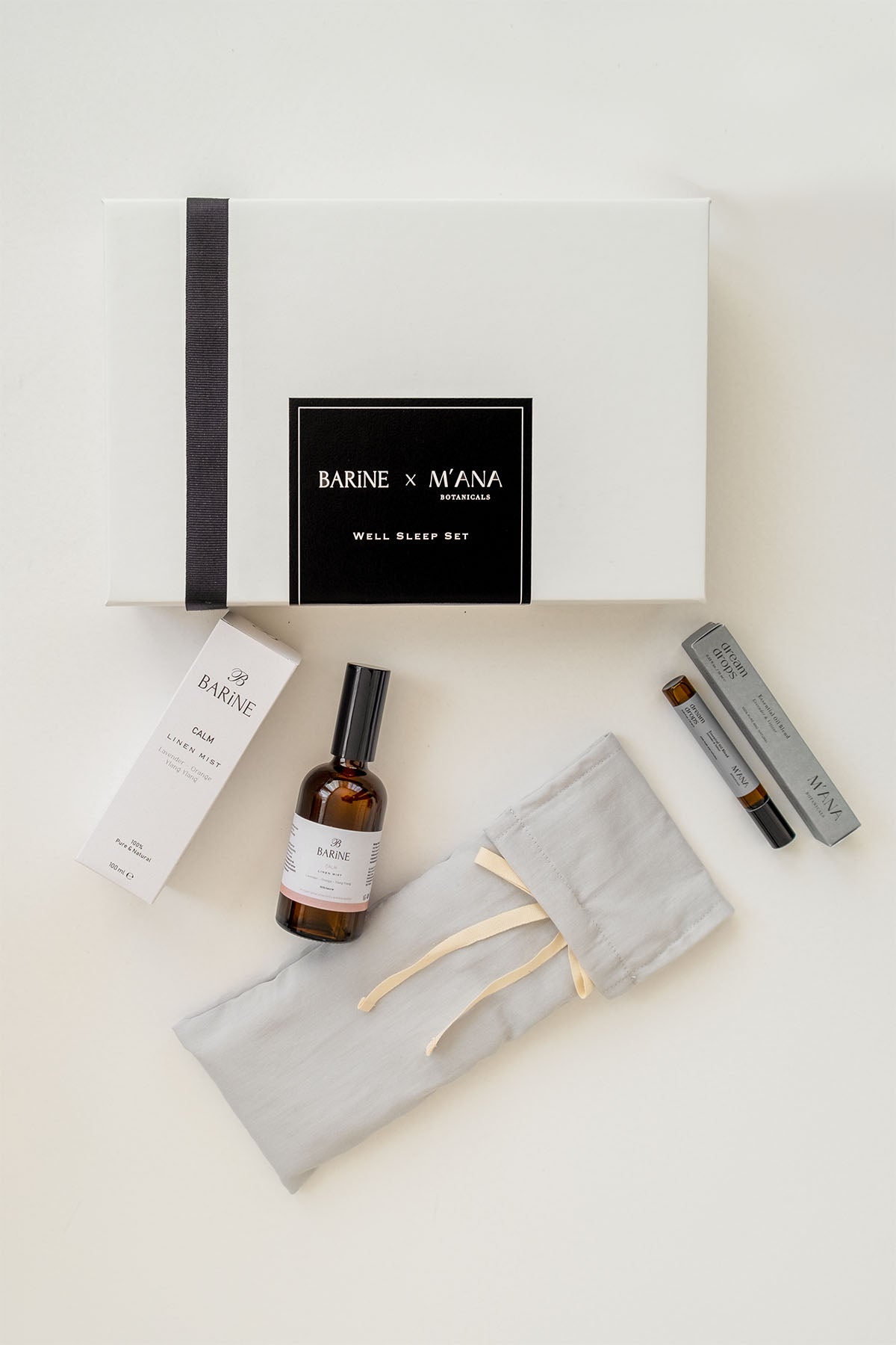 Barine X M’ana Well Sleep Hediye Seti, huzurlu bir uyku deneyimi için tasarlandı. Calm sprey, Dream Drops roll-on ve uyku maskesi ile zihni ve bedeni gevşetir, uykuya geçişi kolaylaştırır. Günlük kullanımda veya seyahatlerde konforlu uyku için ideal bir hediye seçeneğidir.