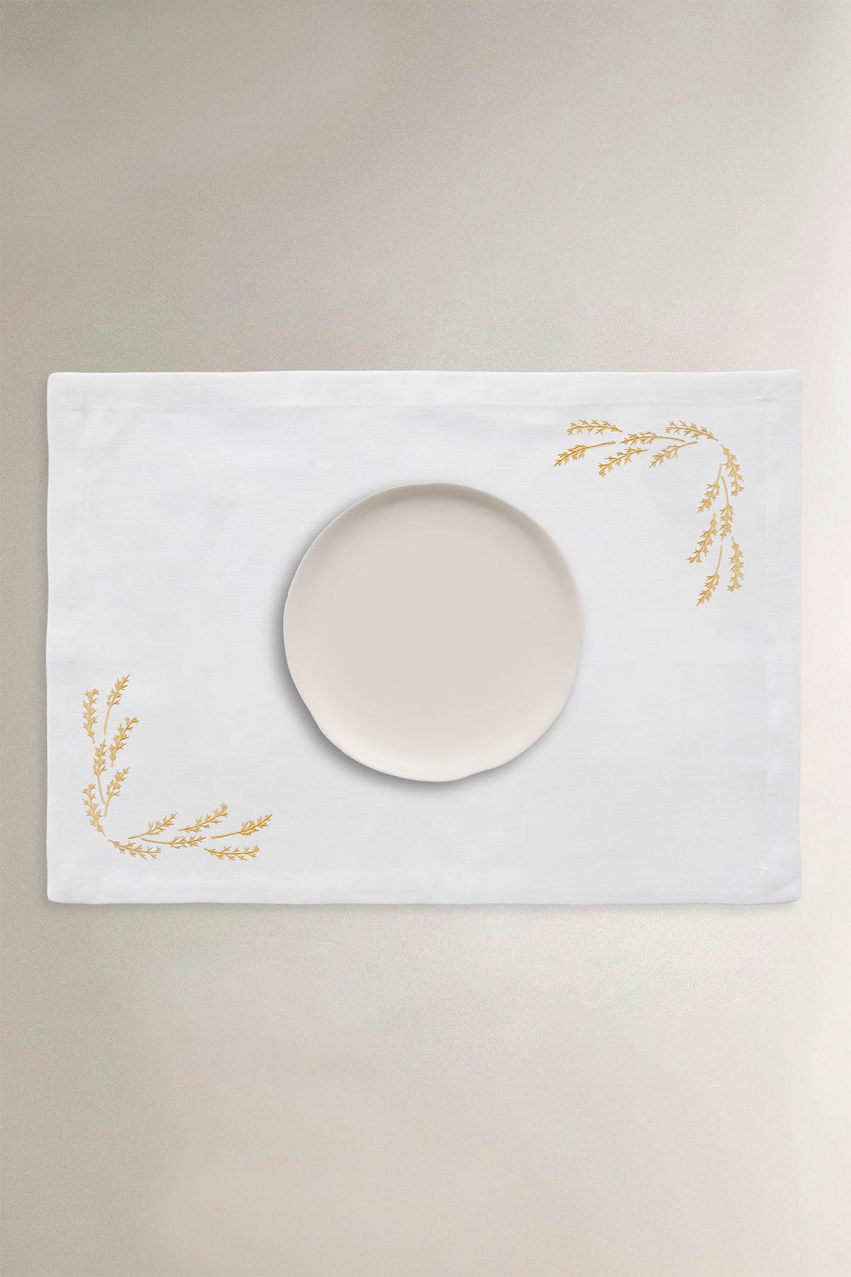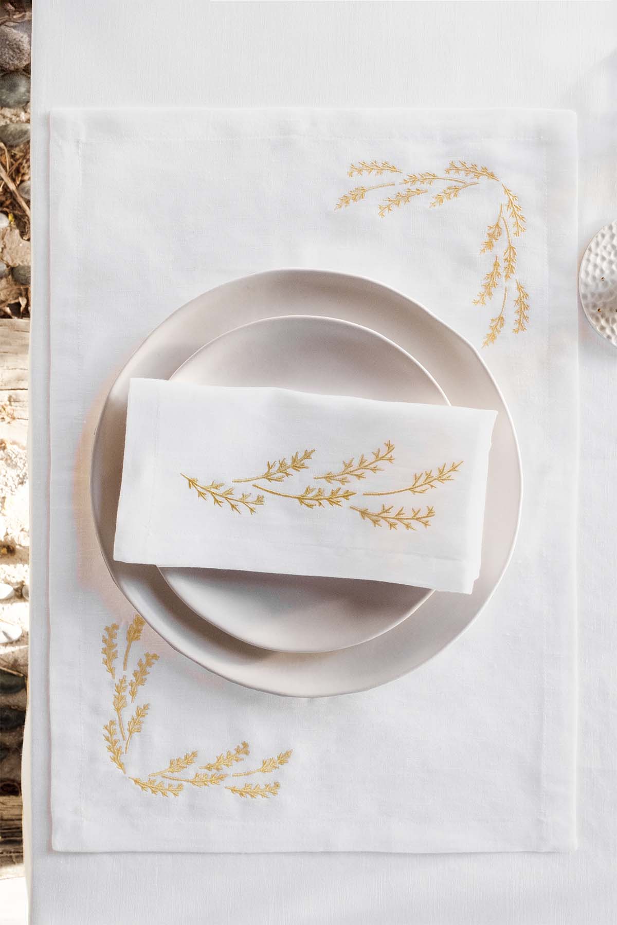 Doğal keten dokusu ve yaprak nakışının zarif uyumuyla öne çıkan bu 2’li Amerikan servis seti, sofralara şık bir görünüm kazandırır. 35x50 cm ölçülerindeki amerikan servisleri, sade tasarımı ve ince işçiliğiyle hem günlük kullanıma hem de özel davetlere uyum sağlar. Zamansız ve estetik bir masa düzeni oluşturmak isteyenler için ideal bir seçenektir. Uyumlu masa örtüsü ve peçeteleri ile şık davetler için vazgeçilmezdir.