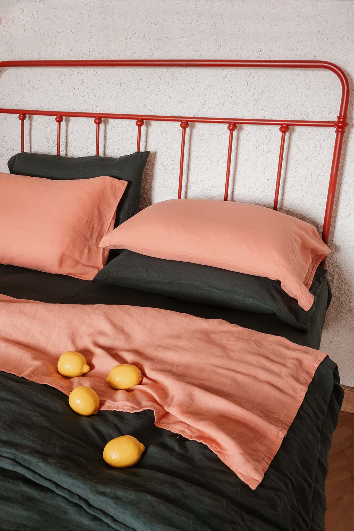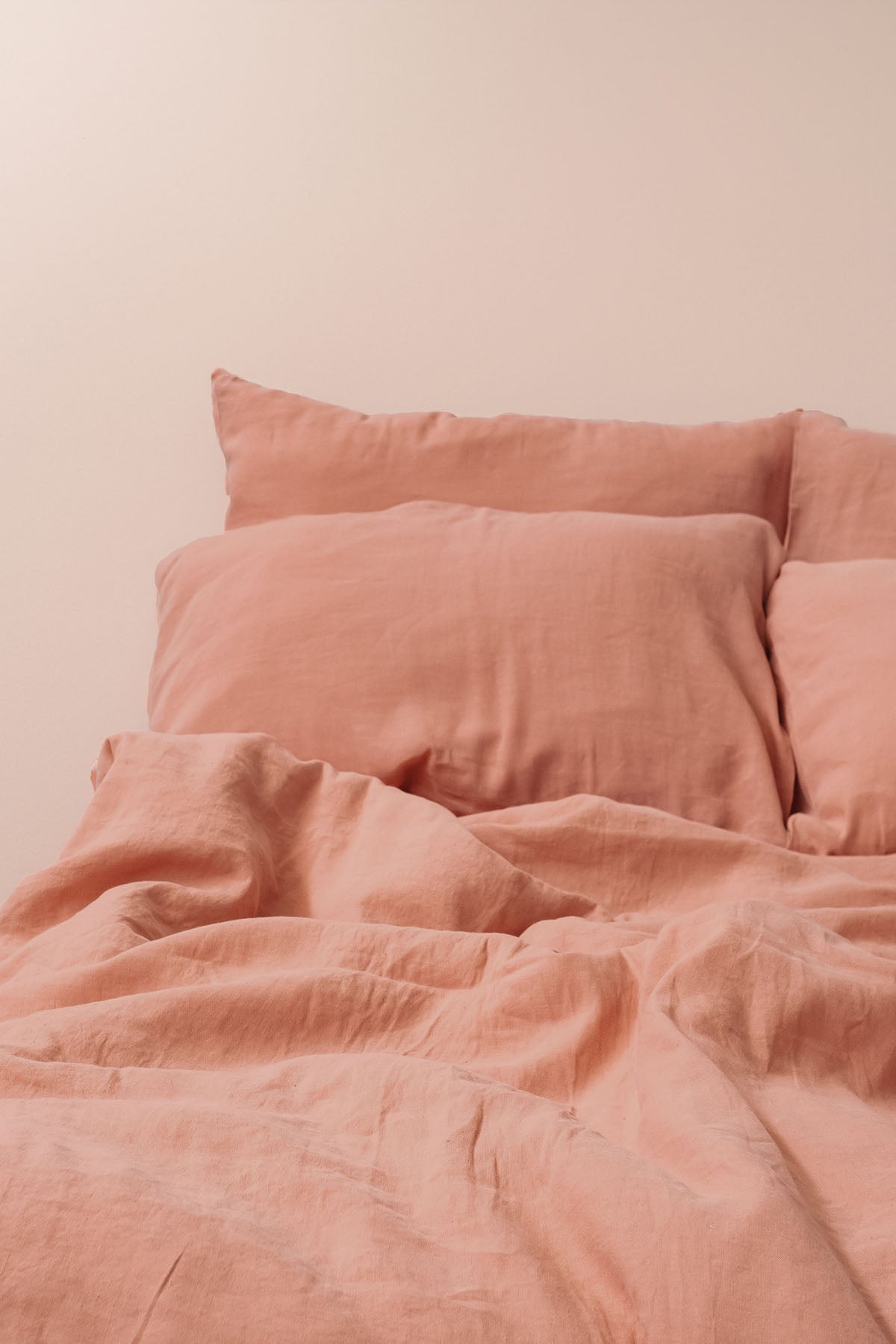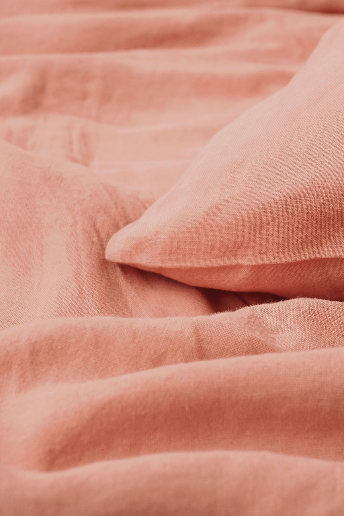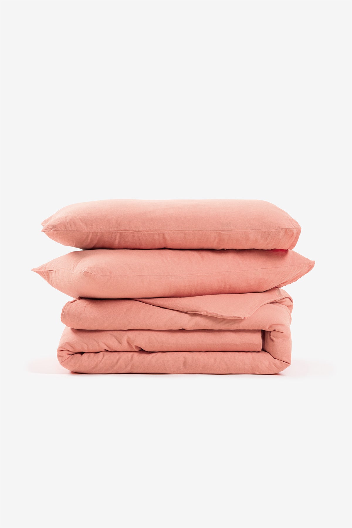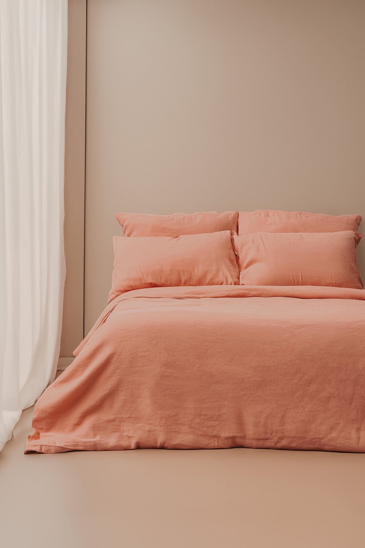 Yıkanmış Keten Çift Kişilik Nevresim Seti Açık Mercan