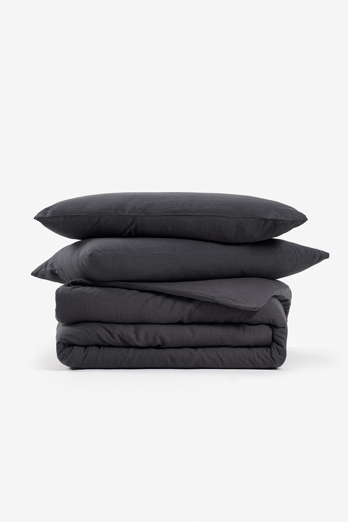 Yıkanmış Keten Çift Kişilik Nevresim Seti Antrasit