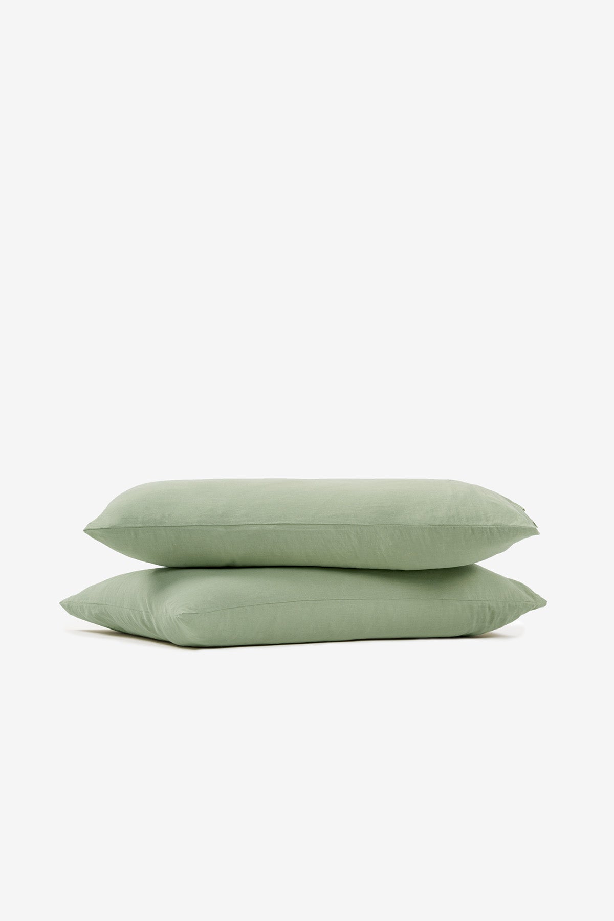 Yıkanmış Keten Yastık Kılıfı 2'li Set Açık Yeşil