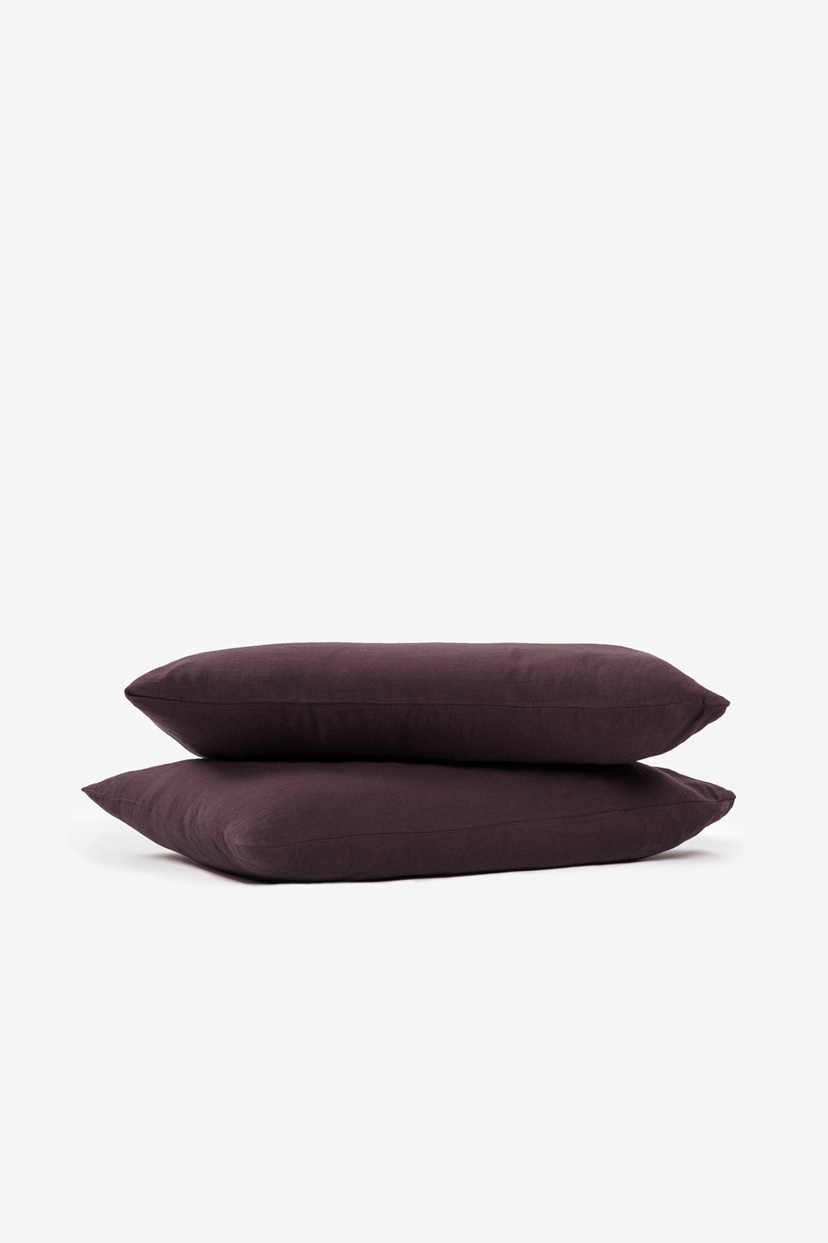 Yıkanmış Keten Yastık Kılıfı 2'li Set Bordo
