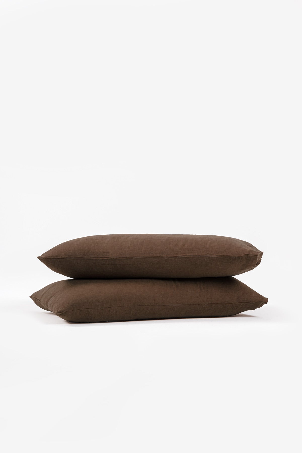 Yıkanmış Keten Yastık Kılıfı 2'li Set Kahverengi