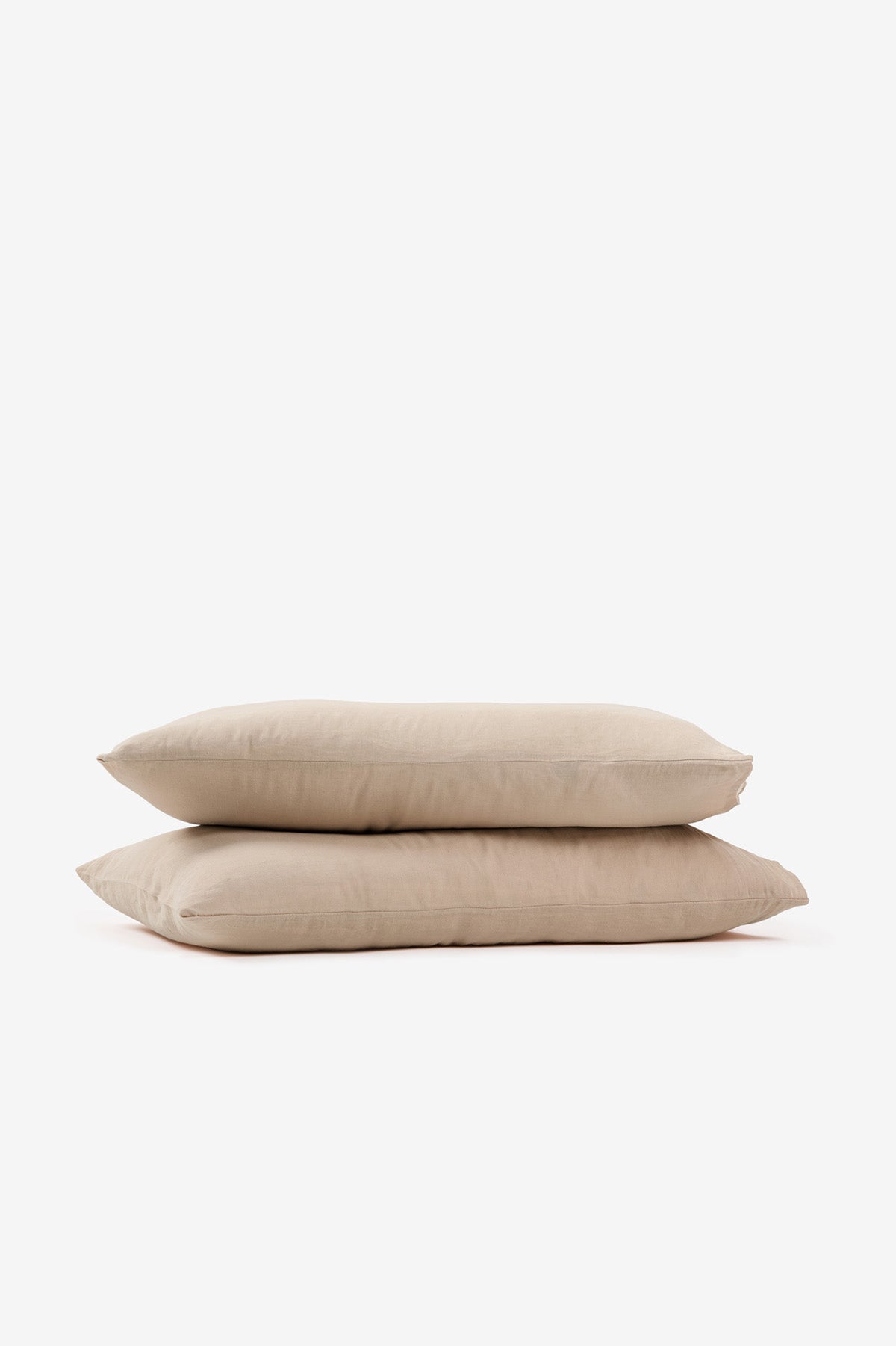 Yıkanmış Keten Yastık Kılıfı 2'li Set Kum Beji