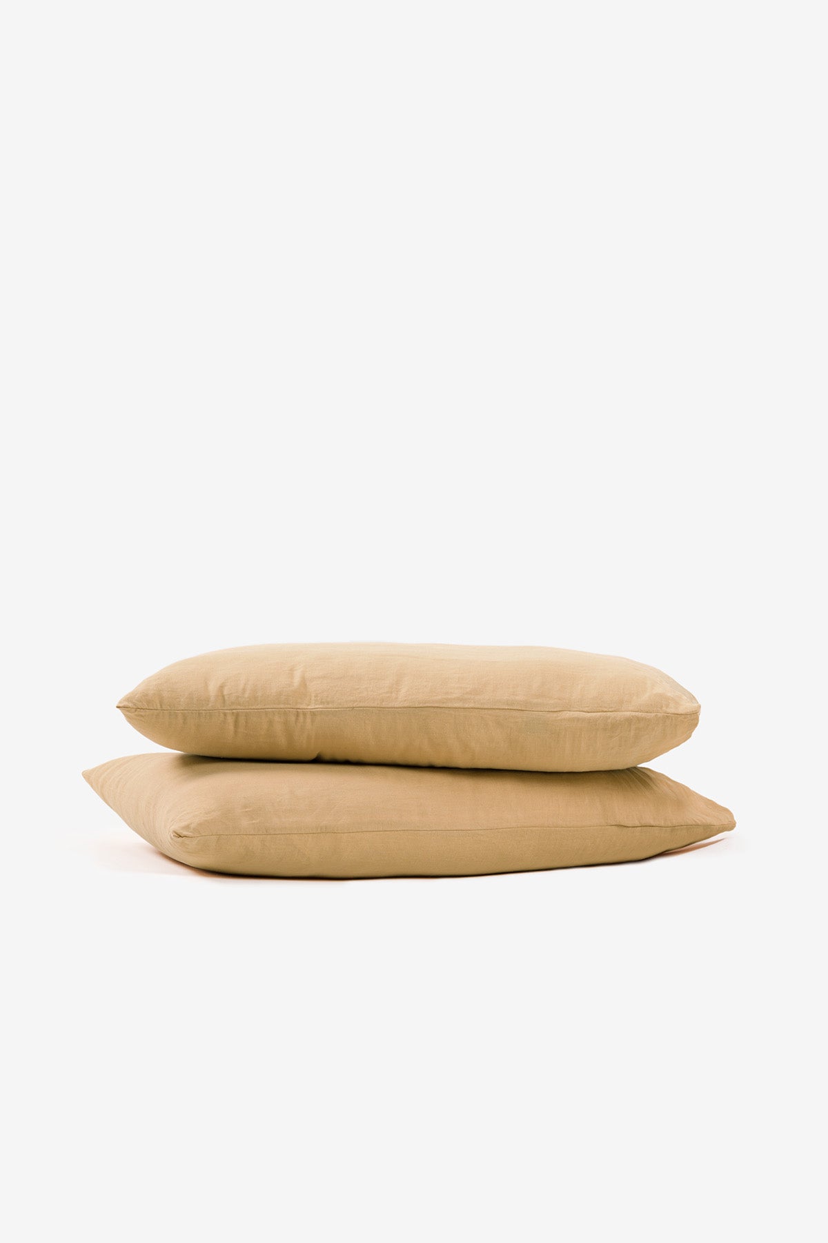 Yıkanmış Keten Yastık Kılıfı 2'li Set Kum Rengi