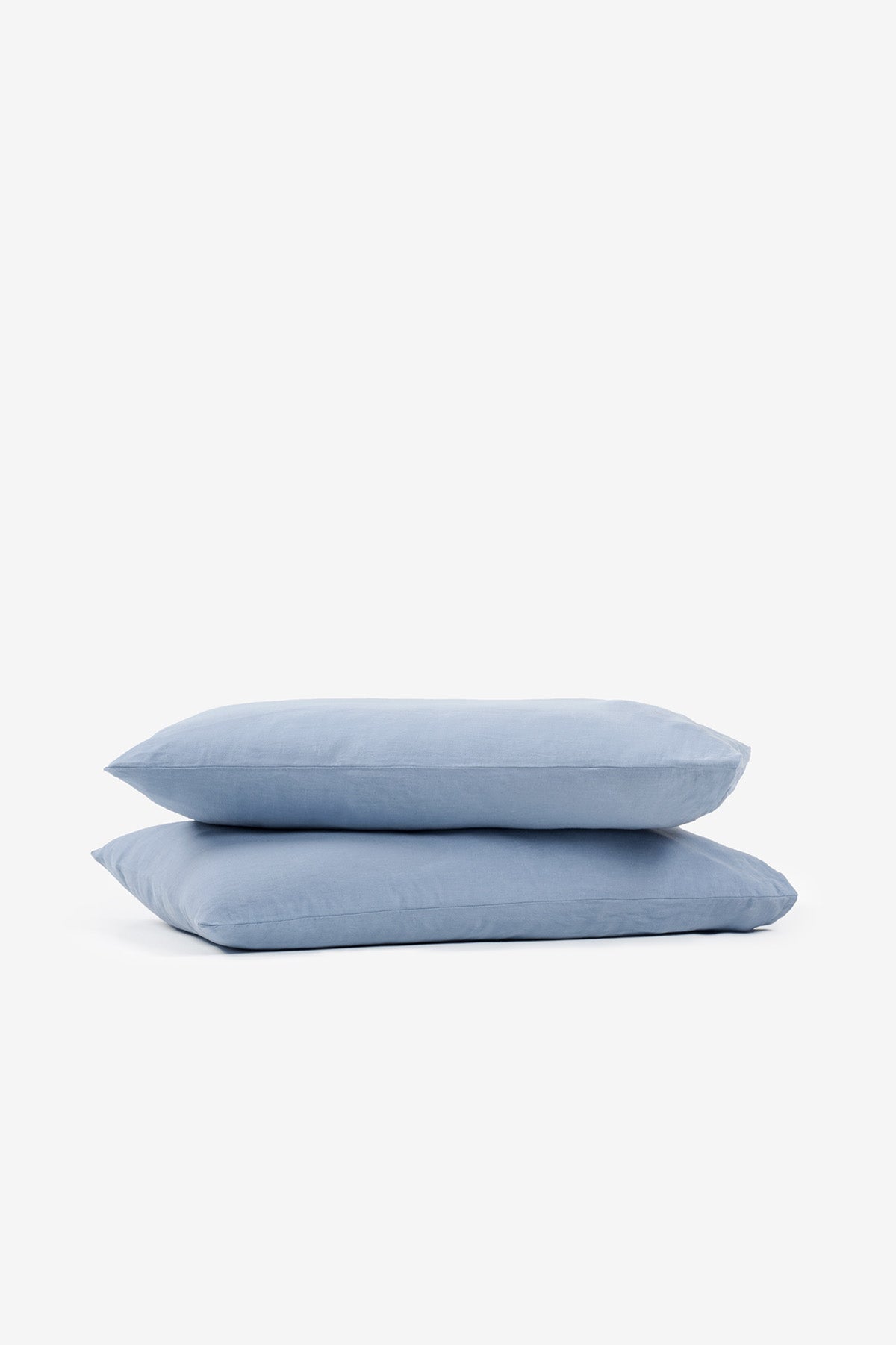 Yıkanmış Keten Yastık Kılıfı 2'li Set Mavi